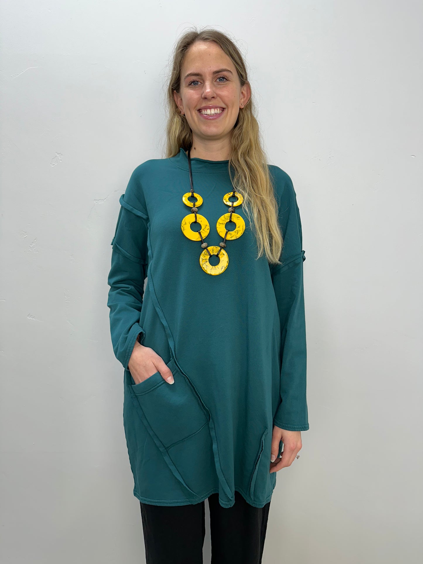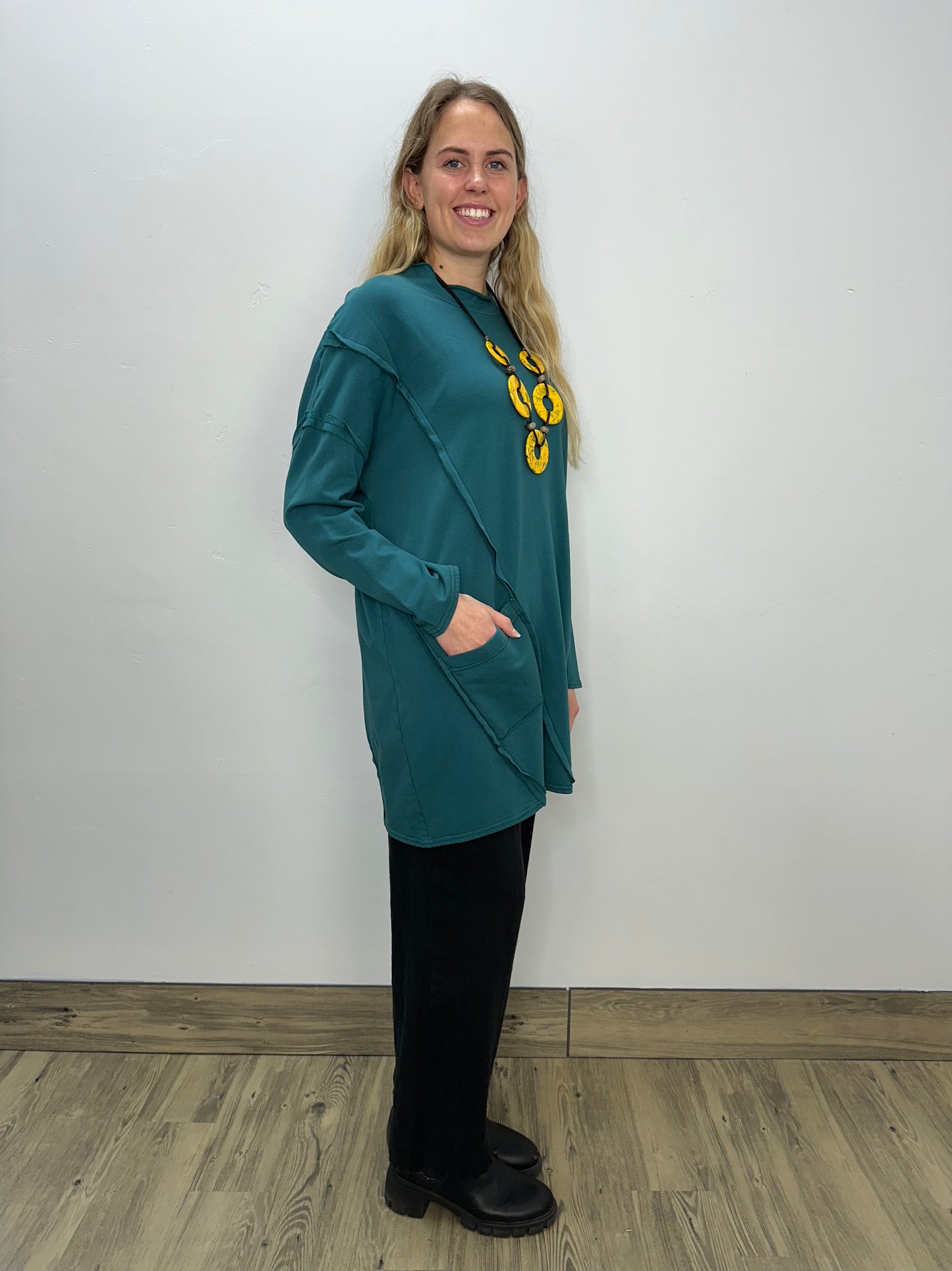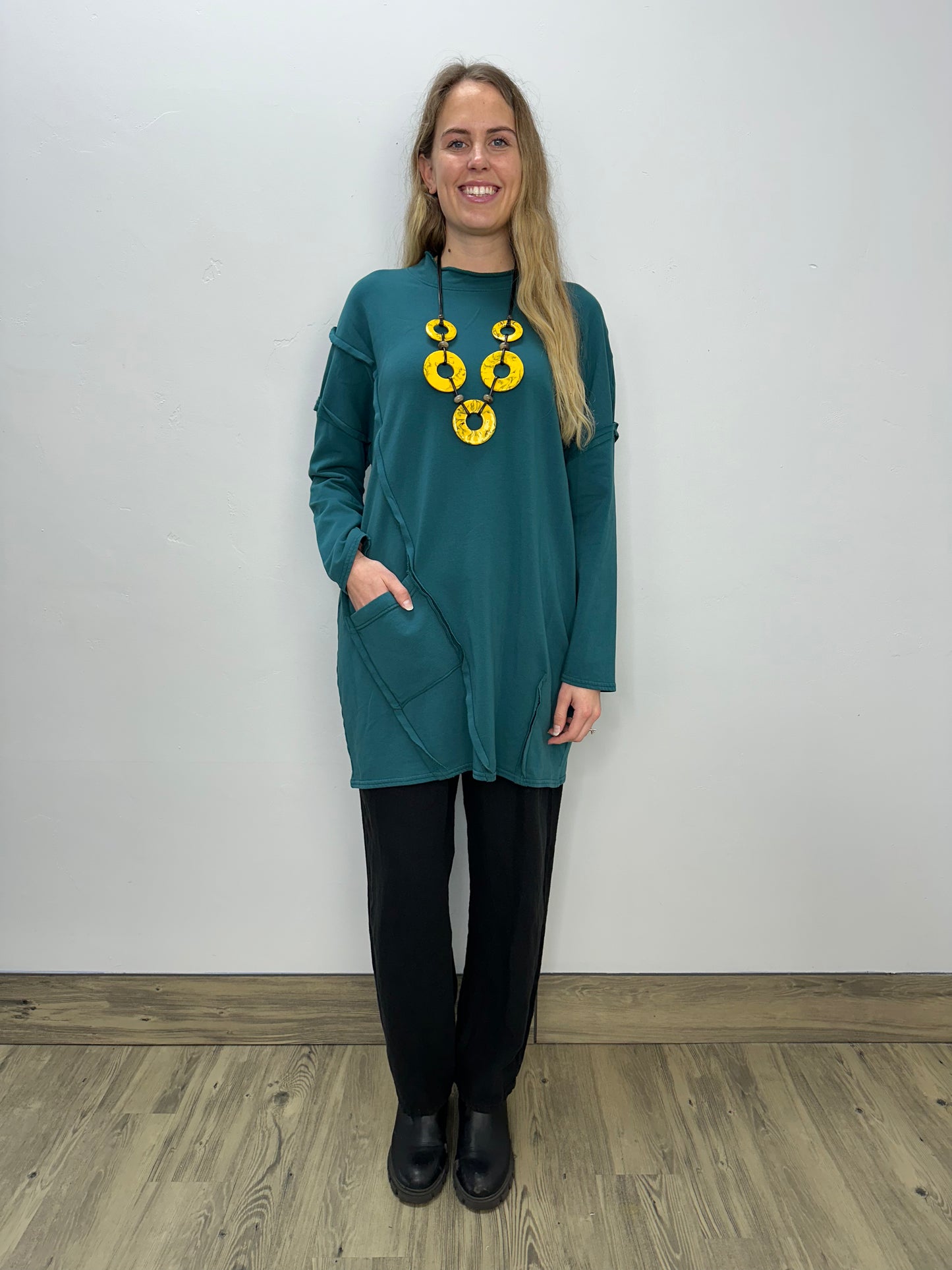 Regular price $118.30Wrap yourself in cozy comfort with our Teal Long Sleeve Fleece Tunic! This beautiful tunic boasts raw asymmetrical seaming, a convenient patch pocket, and a round neckline for a stylish touch. Made with soft fleece, it's the perfect addition to your wardrobe for ultimate comfort and style.