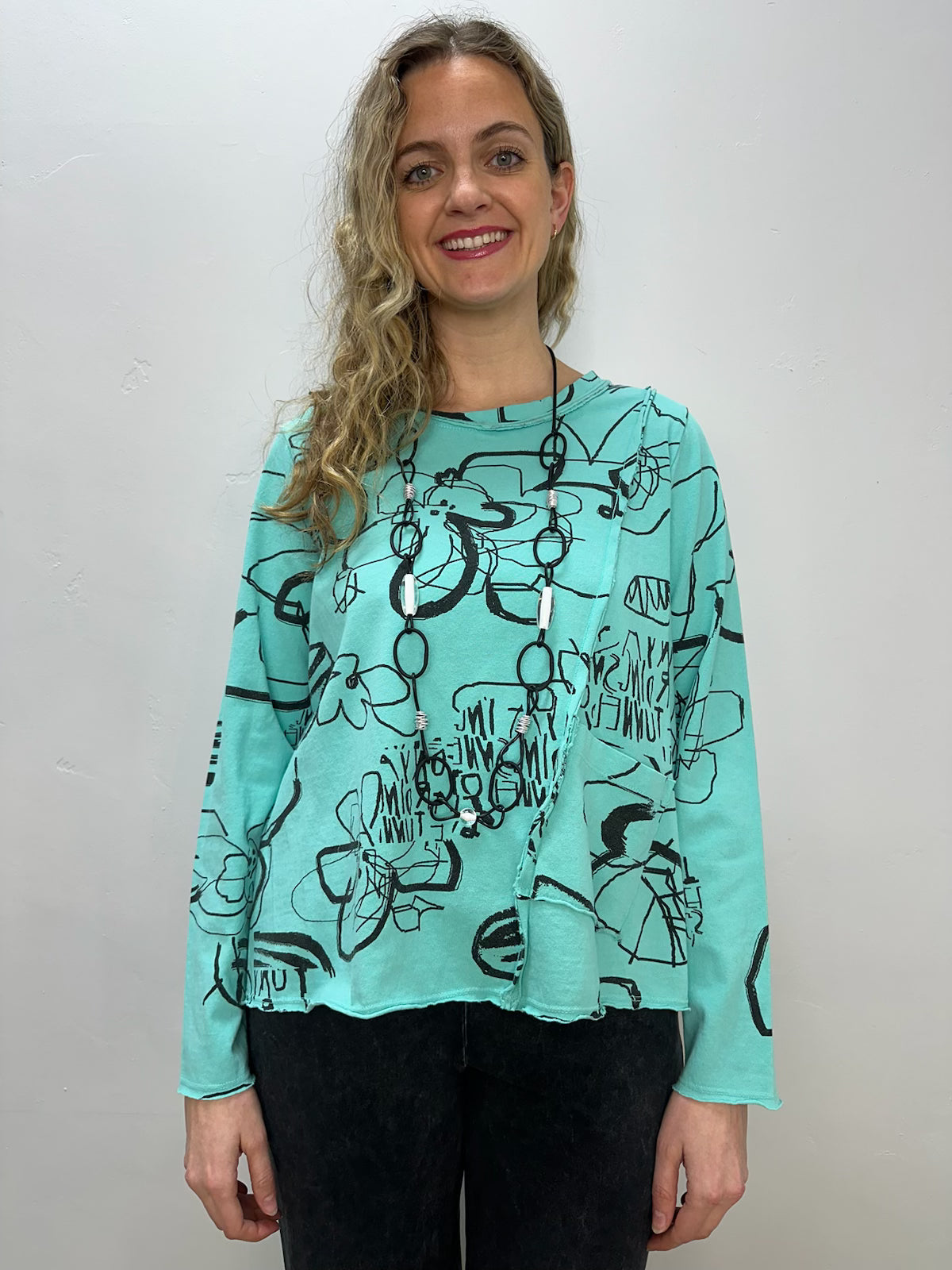 Regular price $103.20Add some playful style to your wardrobe with our Teal Scribbles Printed Top. Featuring a fun scribbles pattern and a flattering scoop neck, this top is sure to make a statement. Made from 100% cotton, it's also perfect for all-day comfort!