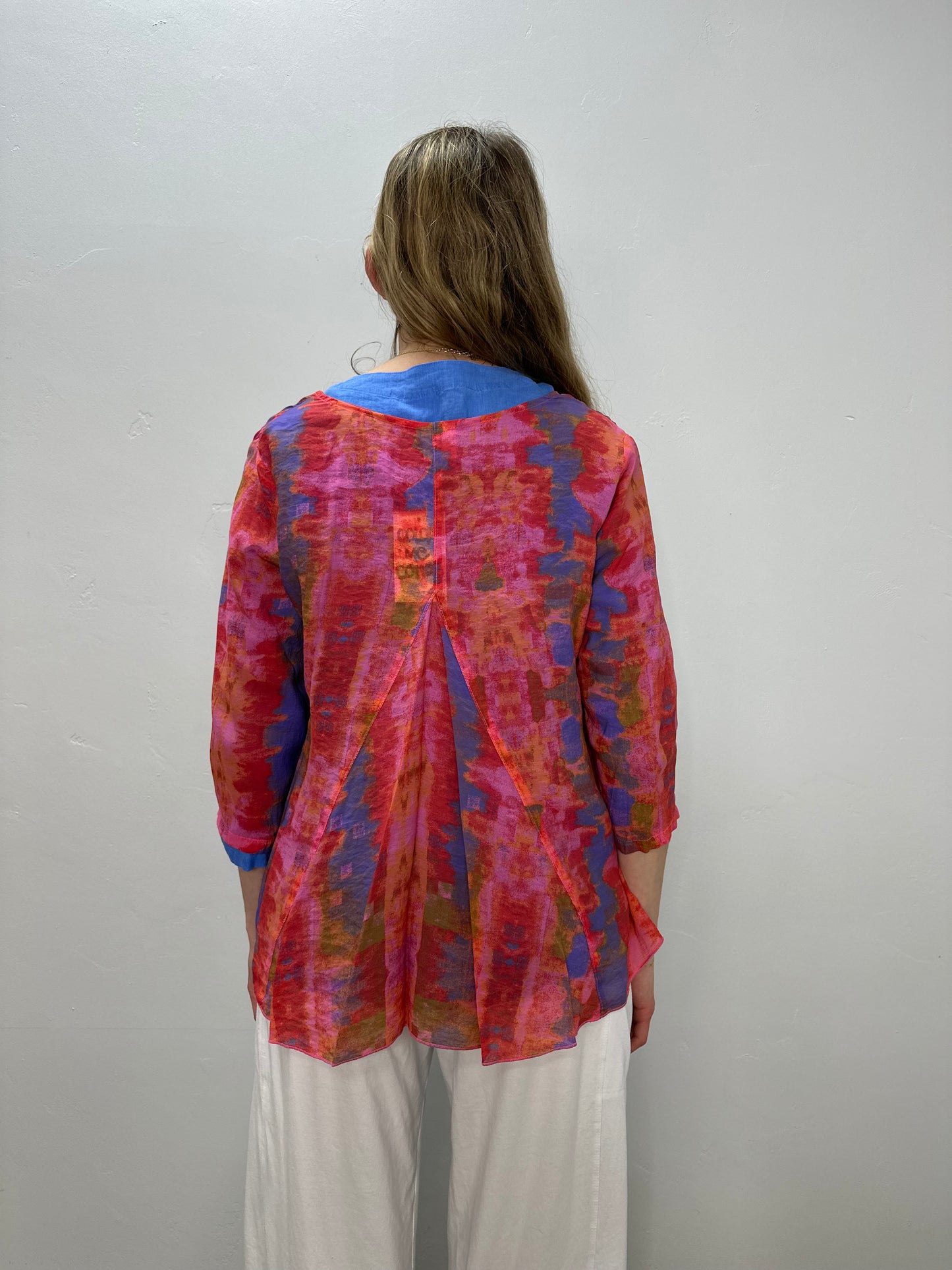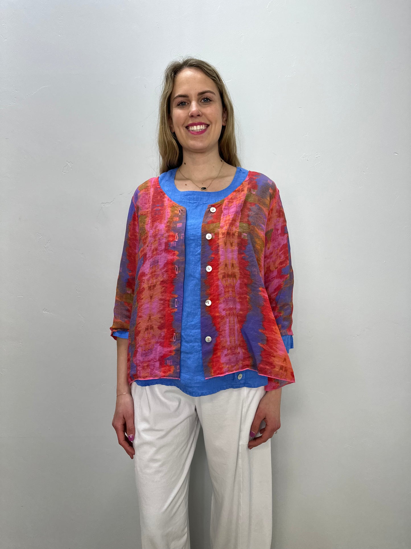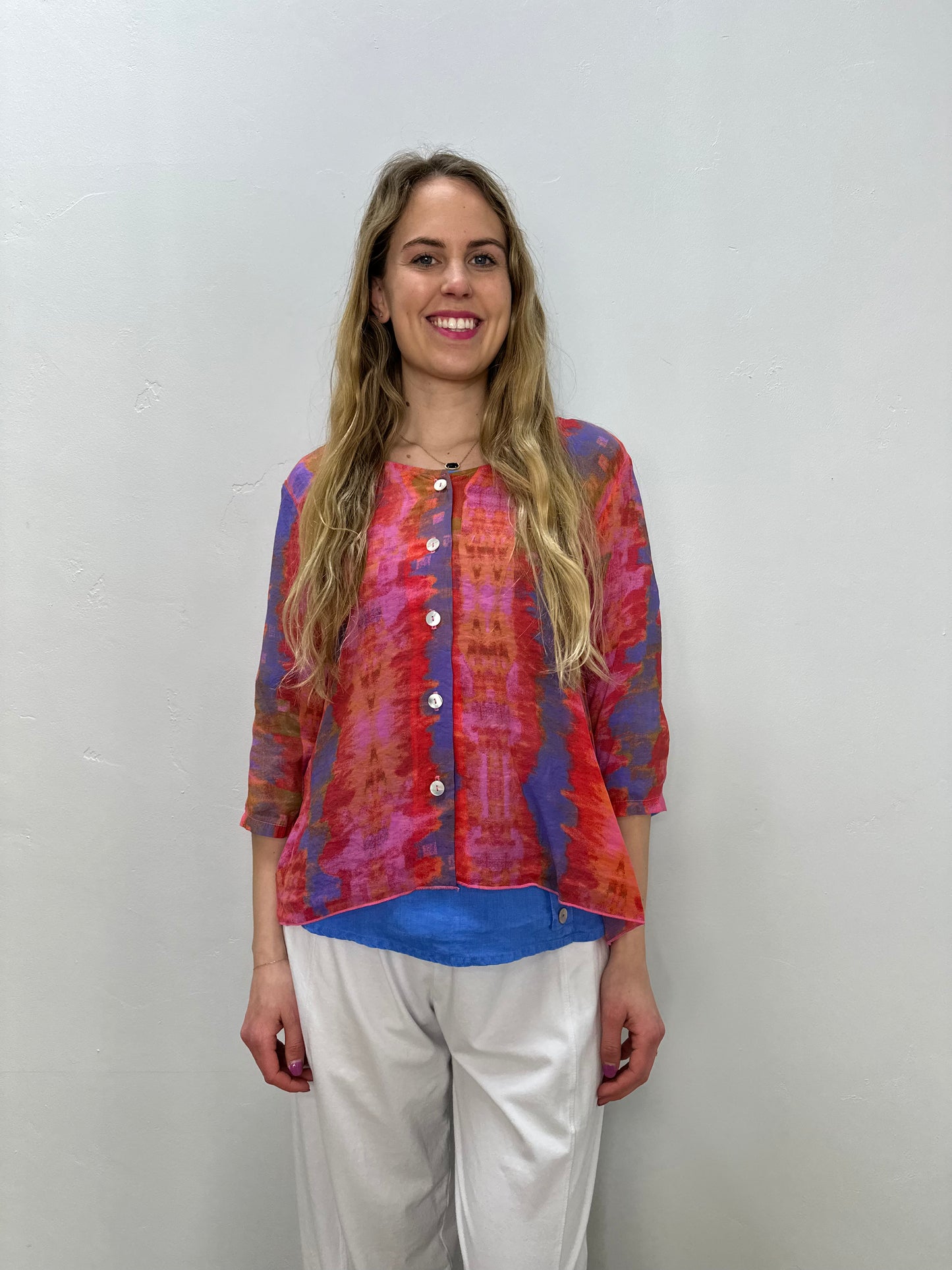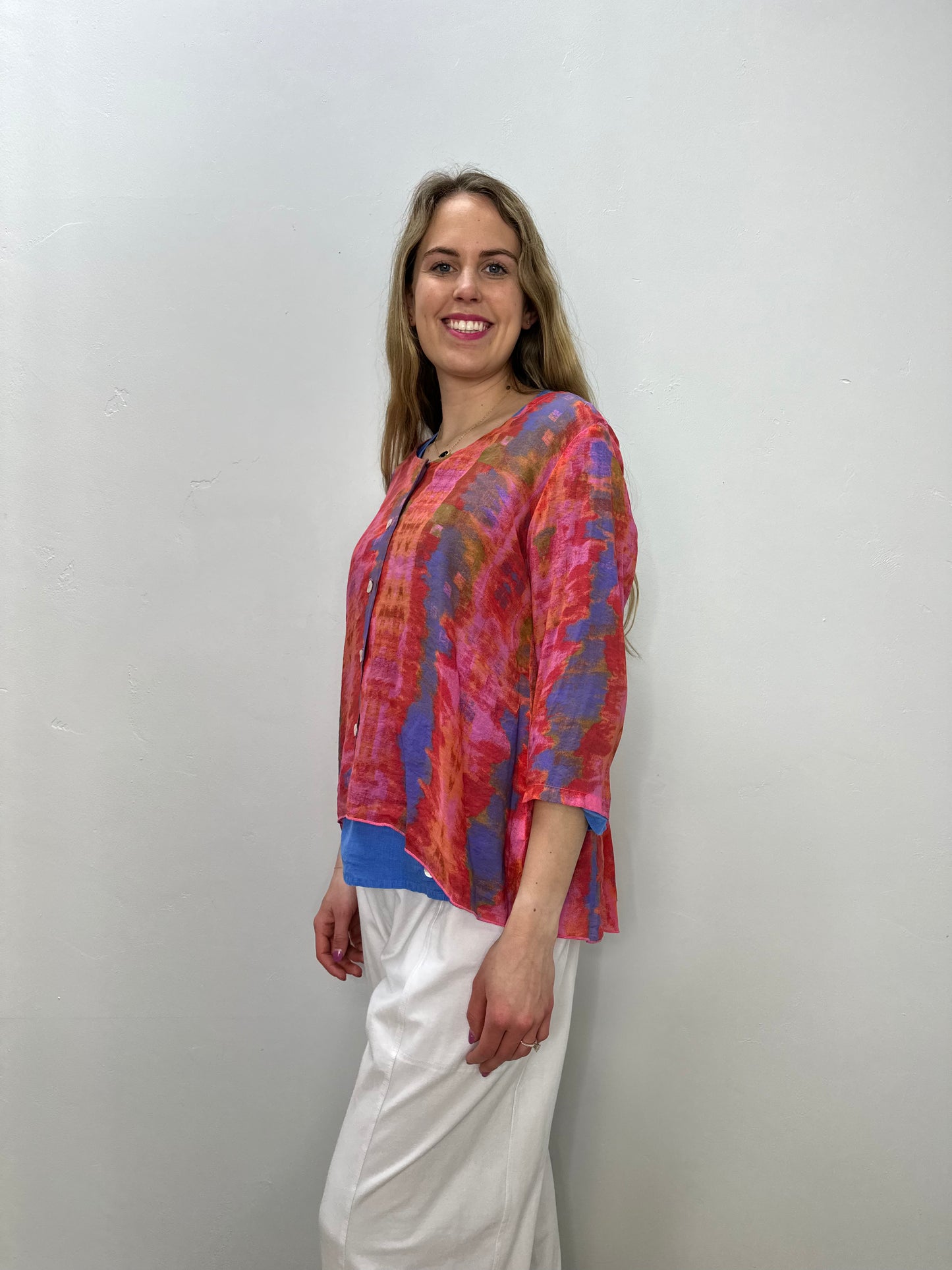 Tie Dye Pink and Purple Button Up Cardigan Blouse