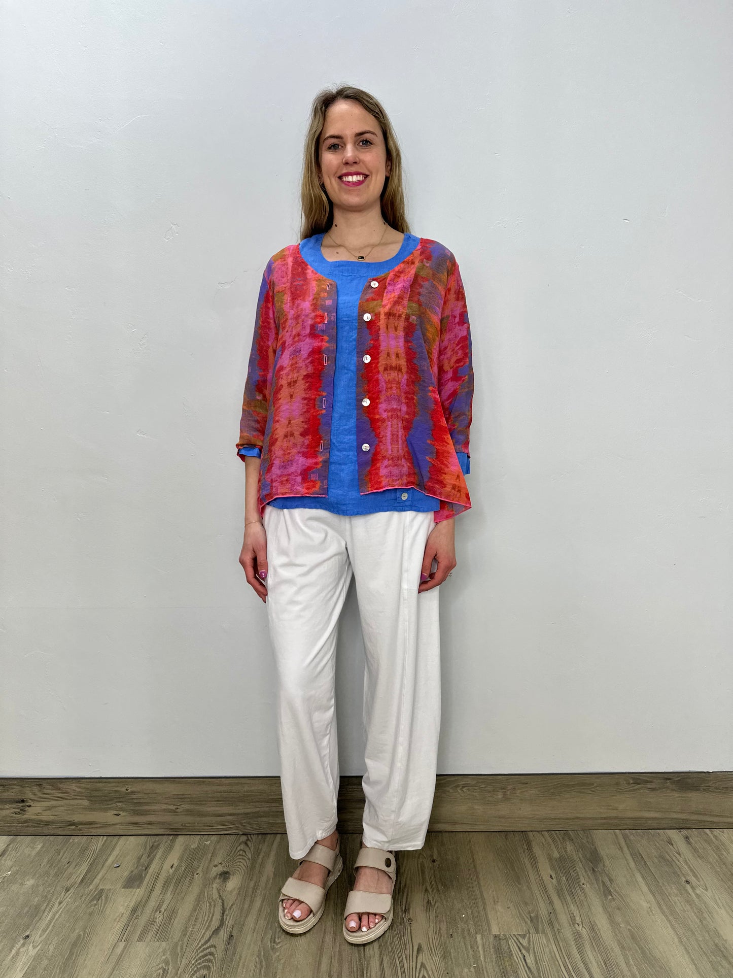 Regular price $67.90Wrap yourself in a burst of color with our Tie Dye Pink and Purple Button Up Cardigan Blouse. Made with lightweight fabric, it's the perfect cover up for a casual day out or a night out on the town. The pleat in the back adds a touch of elegance to this fun and vibrant piece.