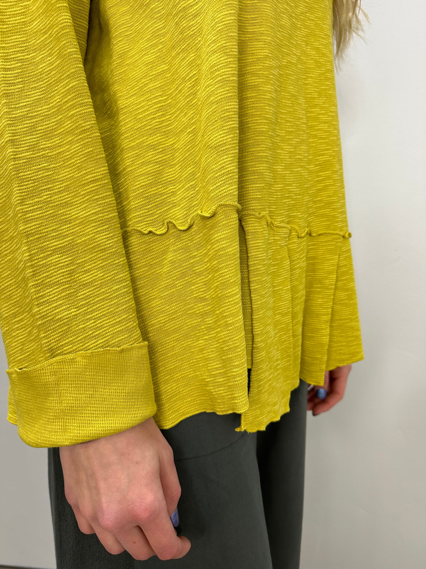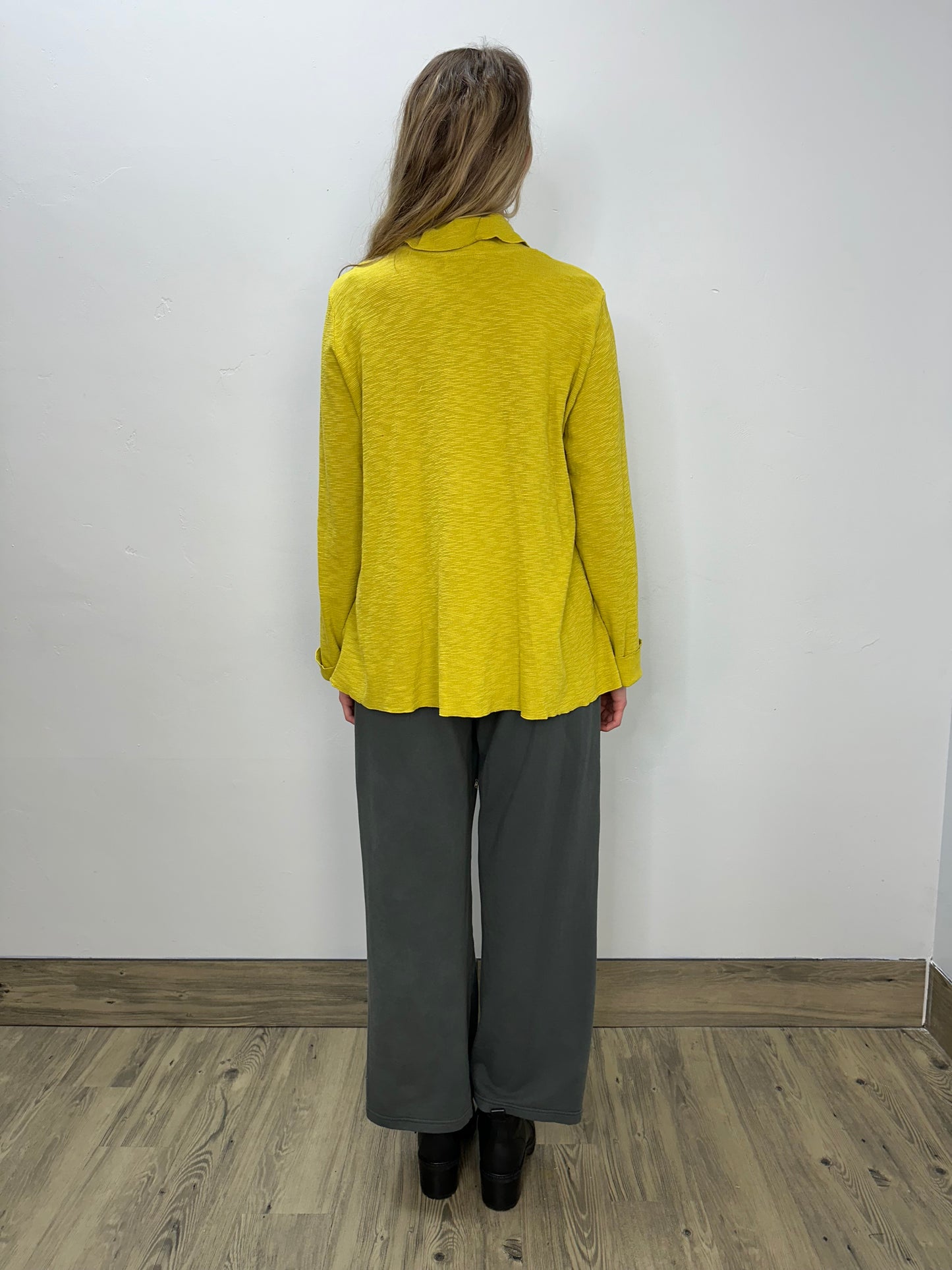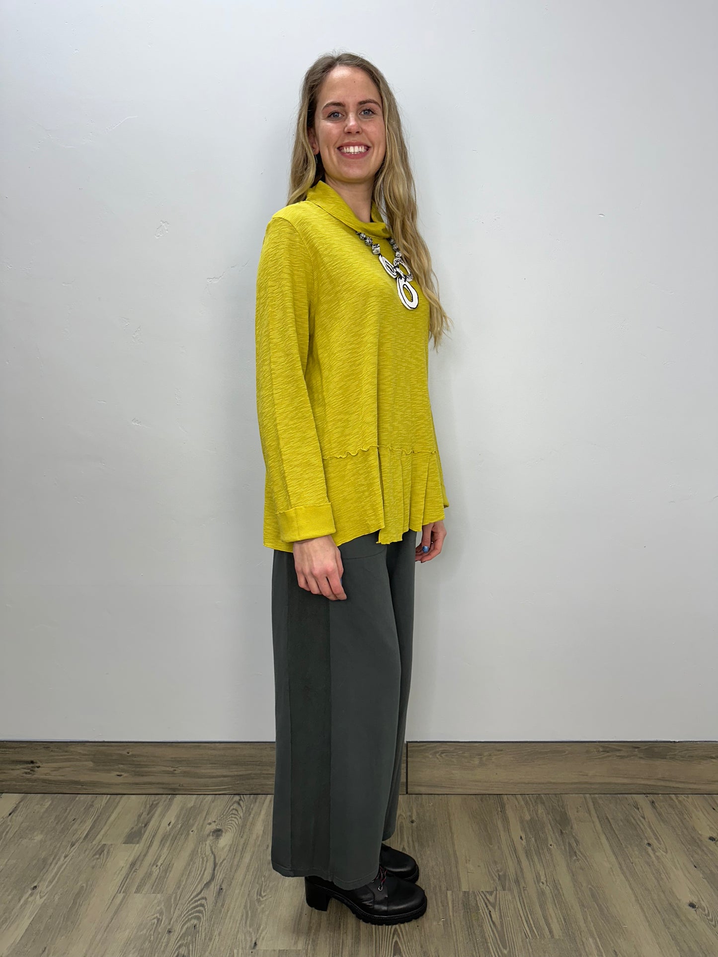 Tuscan Yellow Textured Long Sleeve Pleat Top