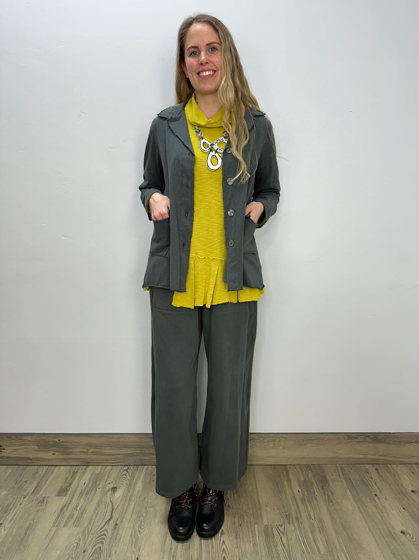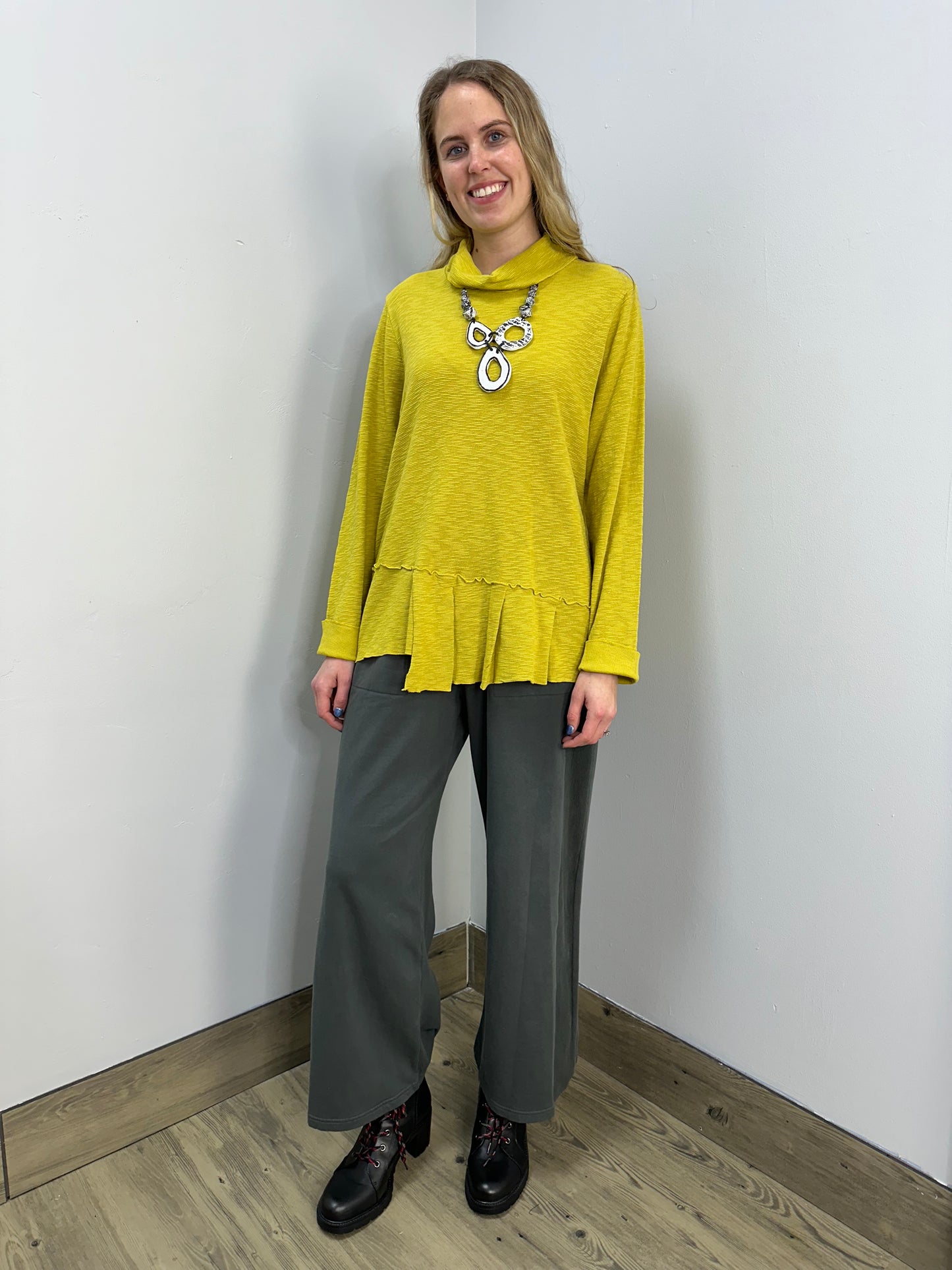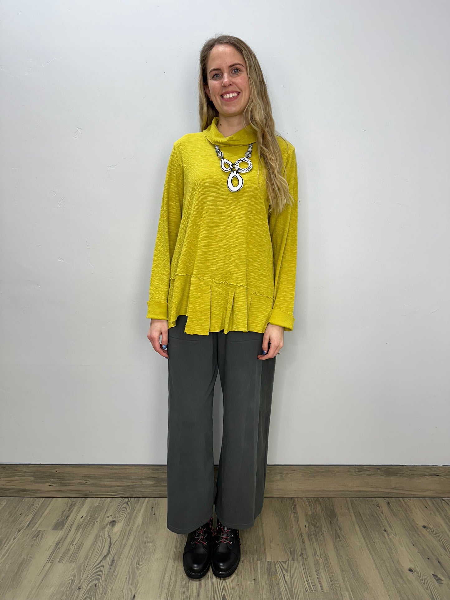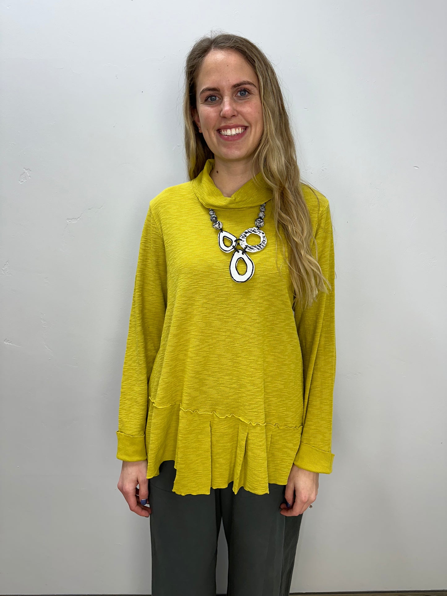 Tuscan Yellow Textured Long Sleeve Pleat Top