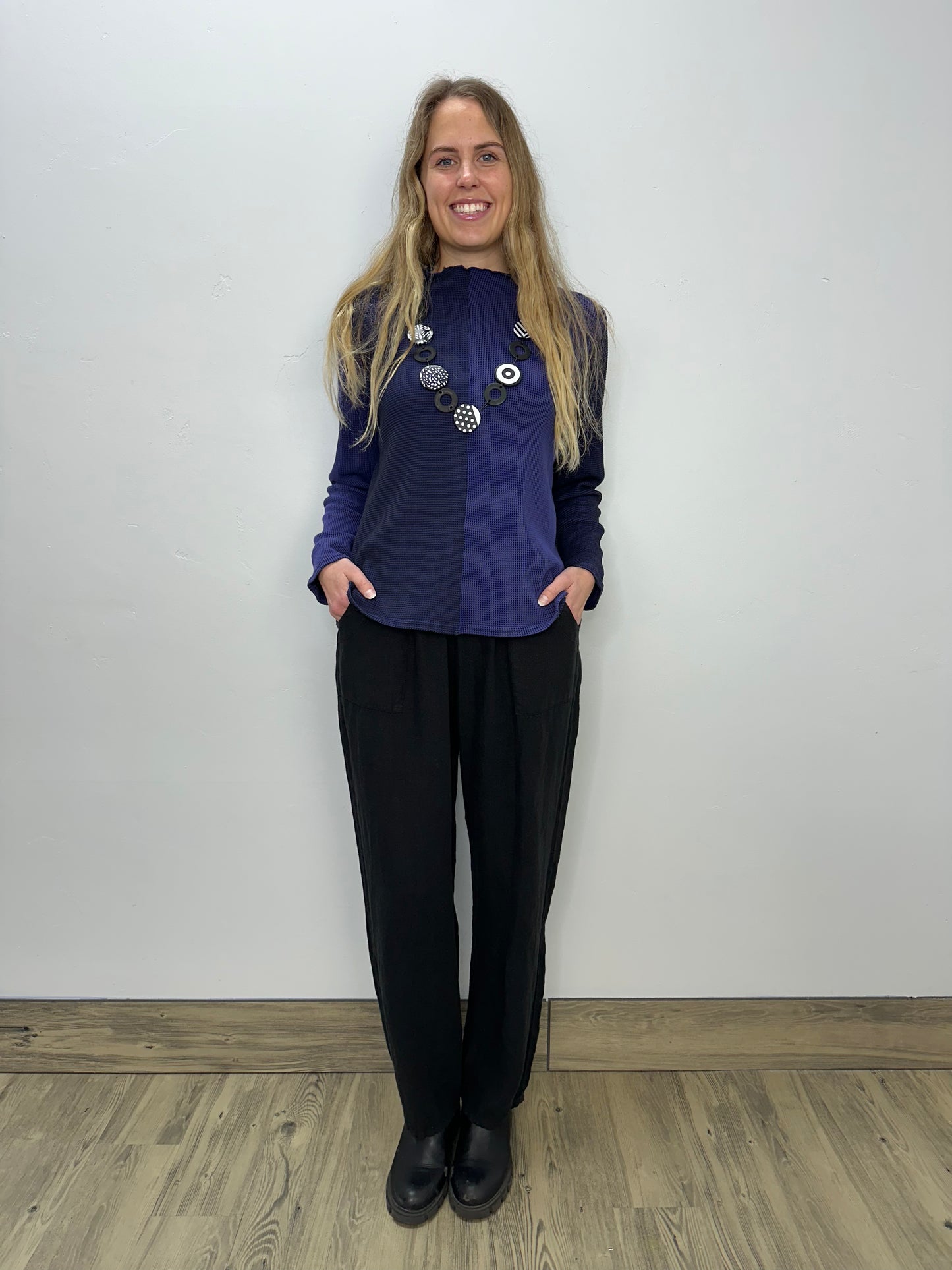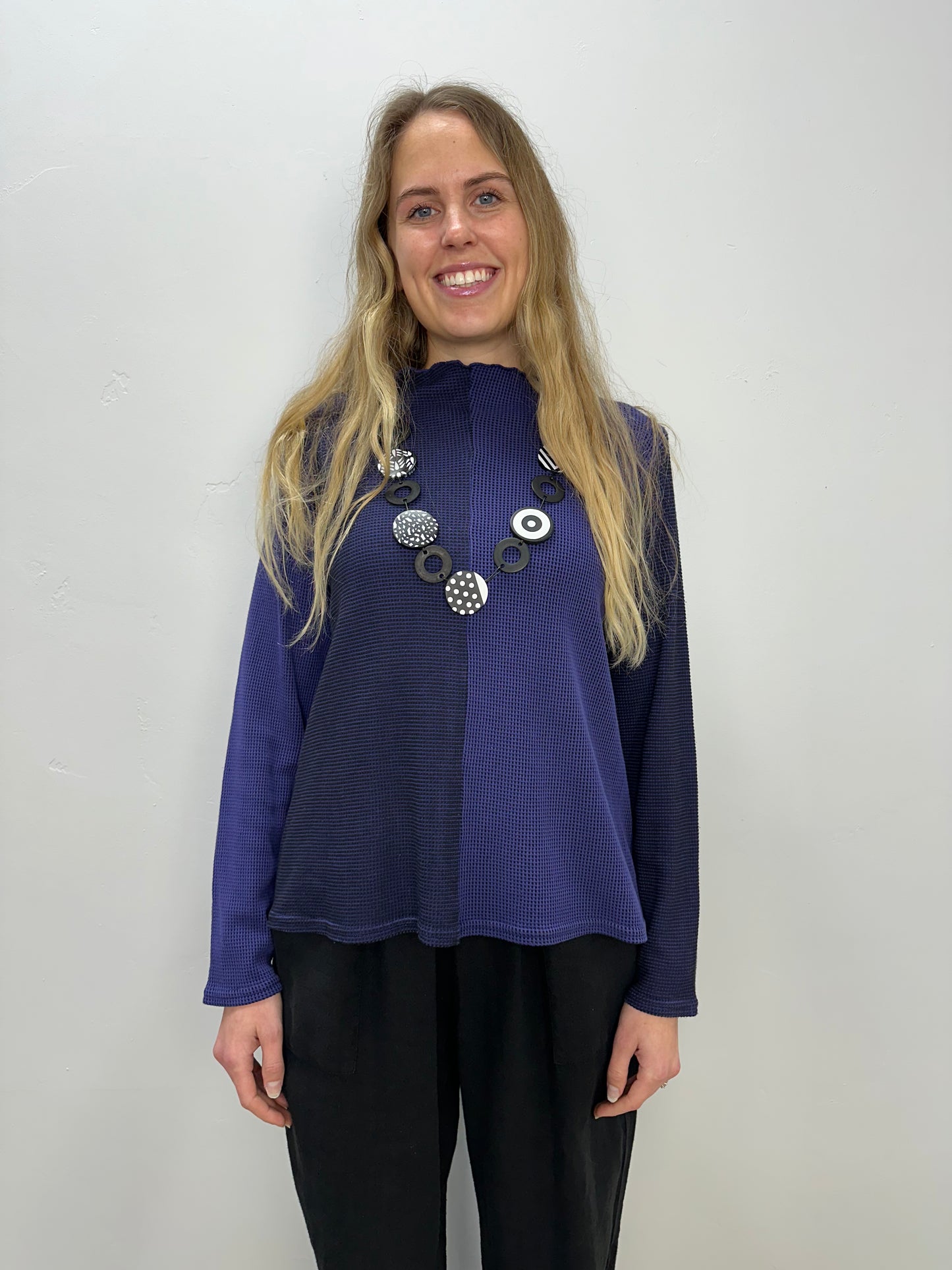 Regular price $90.30Elevate your wardrobe with our Violet Purple Waffle Mock Tee! Featuring a beautiful purple and black waffle pattern, this long sleeve tee is perfect for adding a touch of sophistication to any outfit. The mock neck adds a stylish touch while providing extra warmth. Upgrade your style game today!