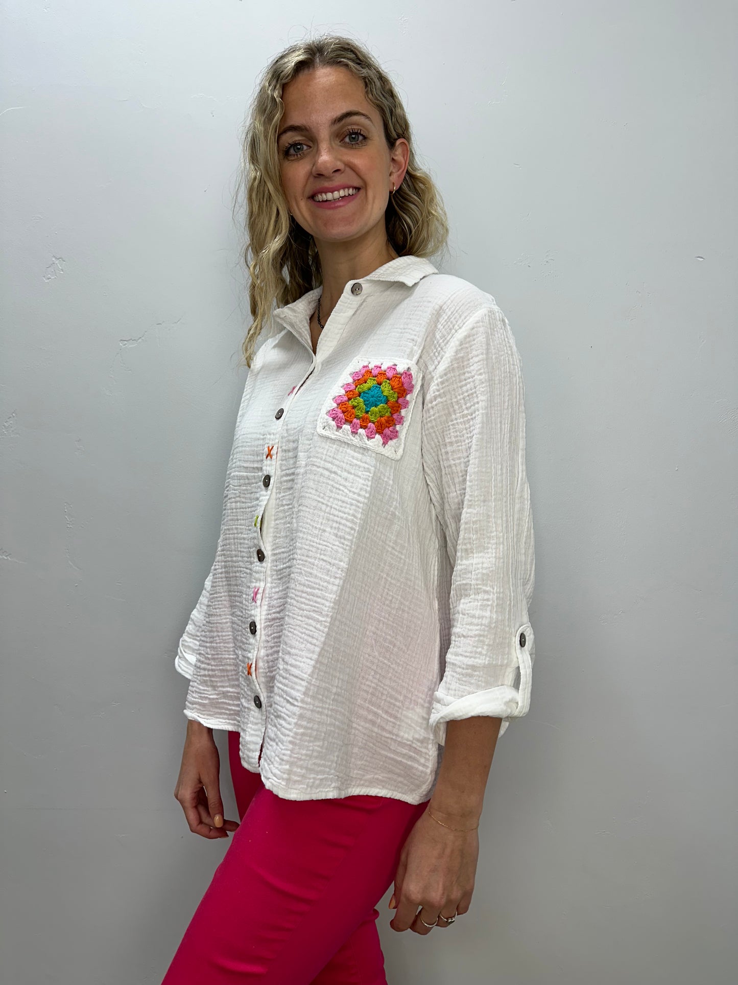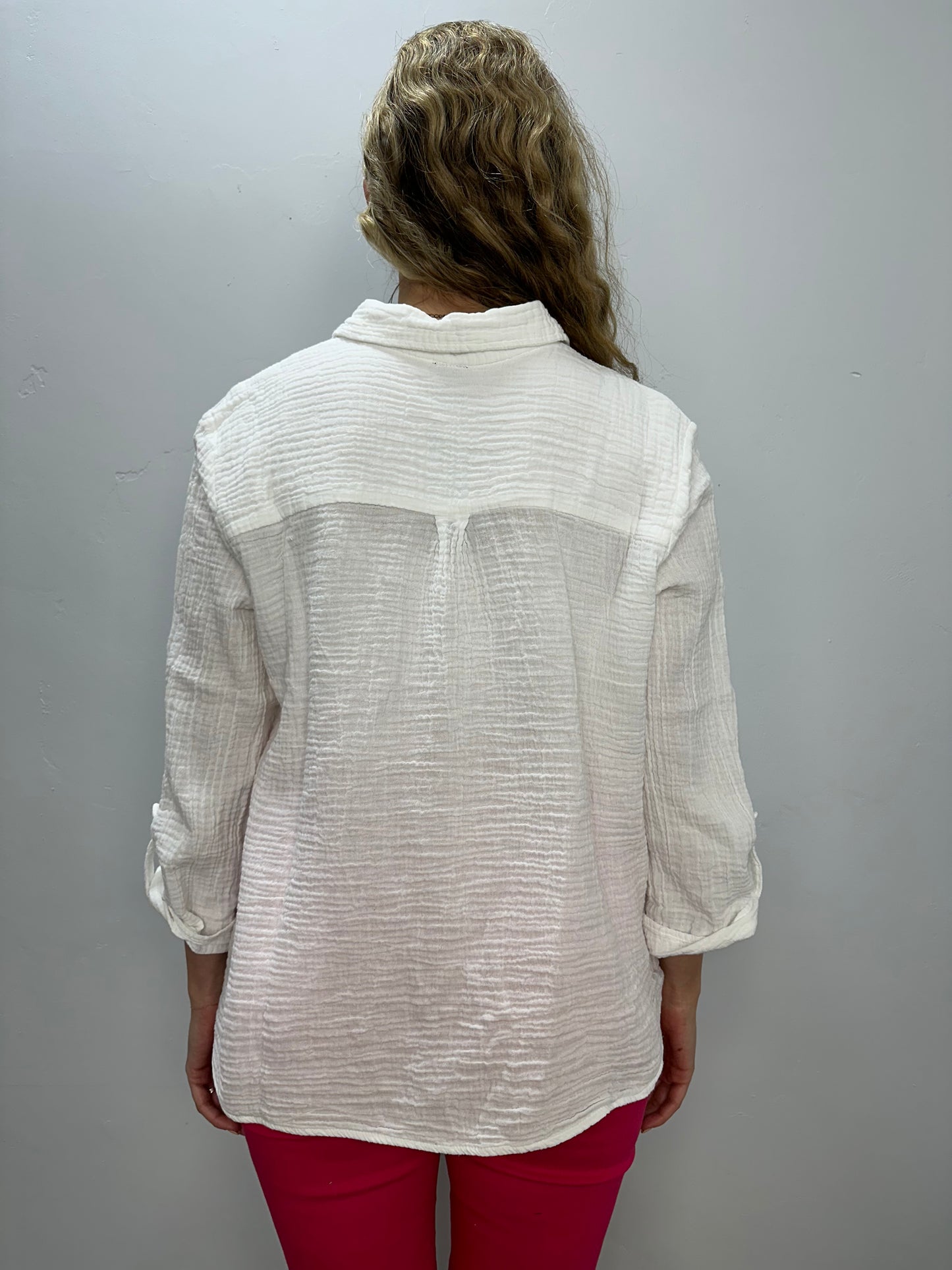 Regular price $67.90Experience ultimate comfort in the White Button Down 100% Cotton Top. Made with 100% cotton fabric, this top offers a soft and breathable feel. The 3/4 sleeves provide a touch of elegance while the cute pop of color on the front pocket adds a fun twist. Get ready to look adorable and feel amazing in this must-have top!