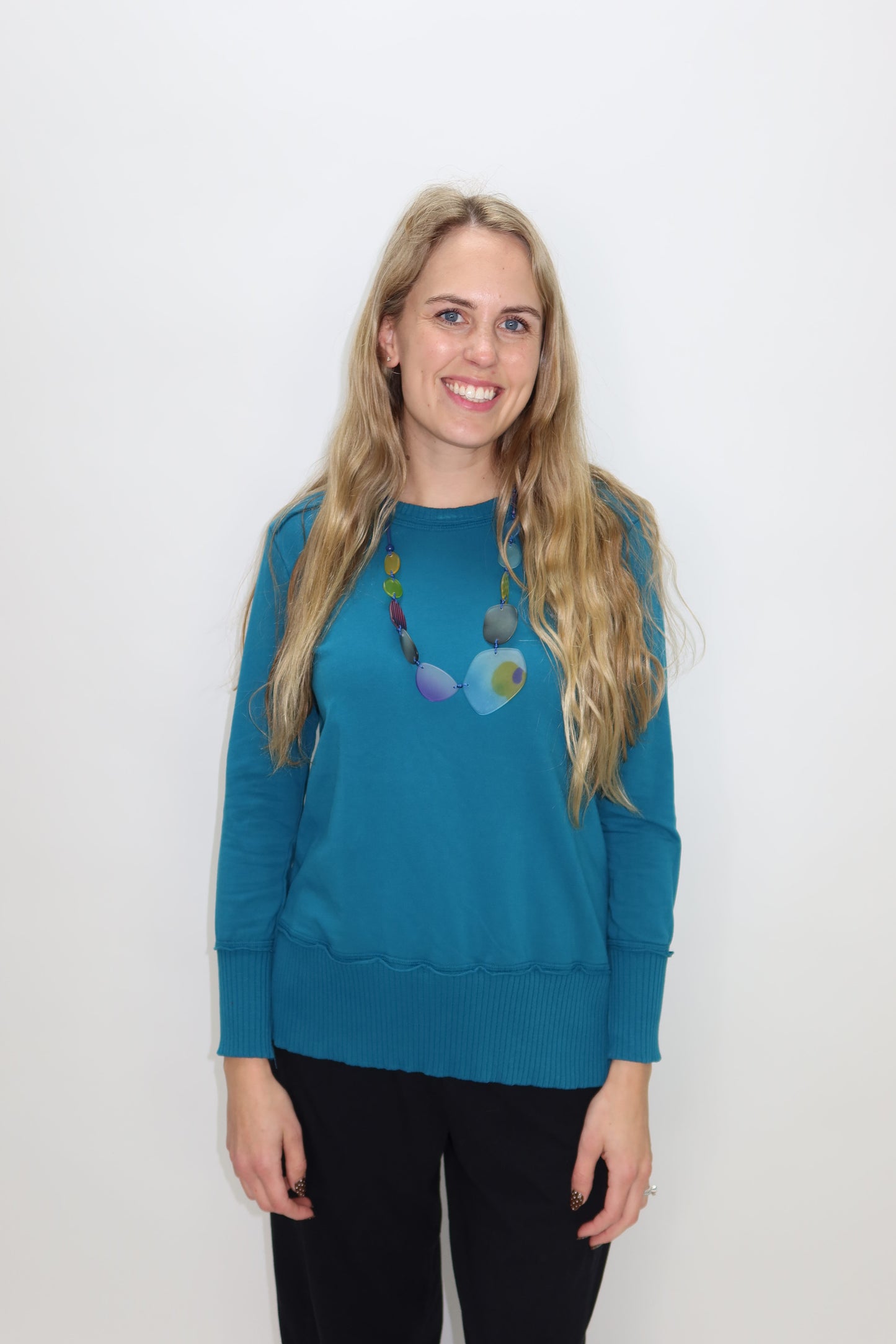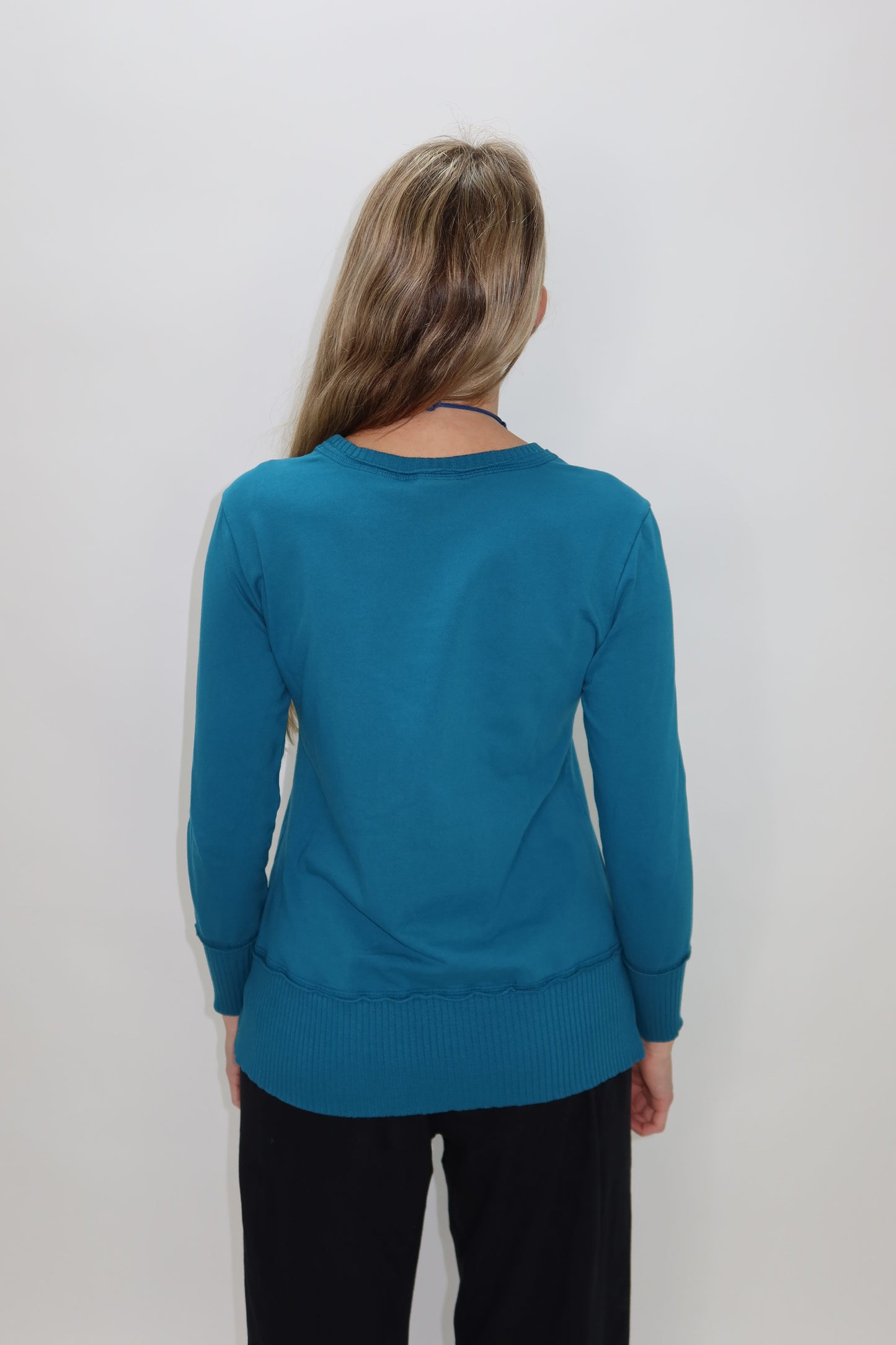 Teal Long Sleeve Ribbed Bottom 100% Cotton Short Sweatshirt