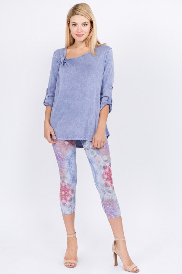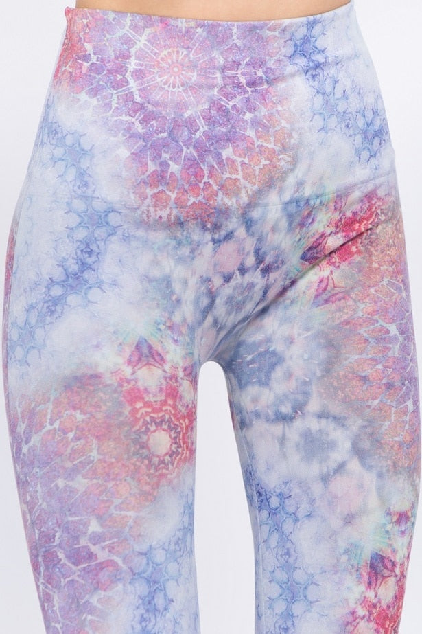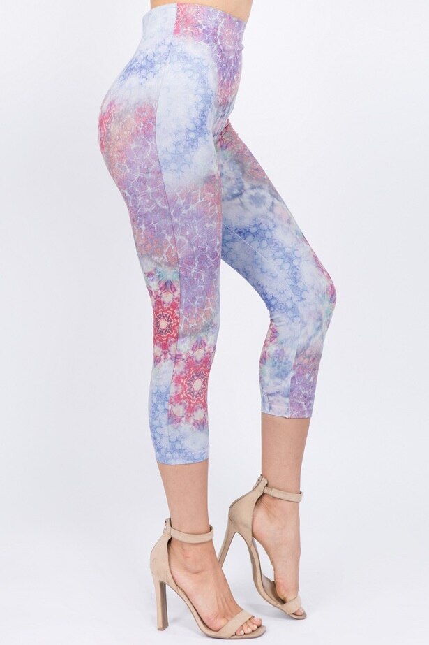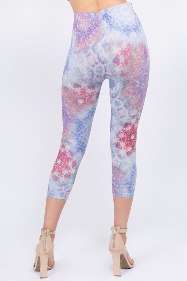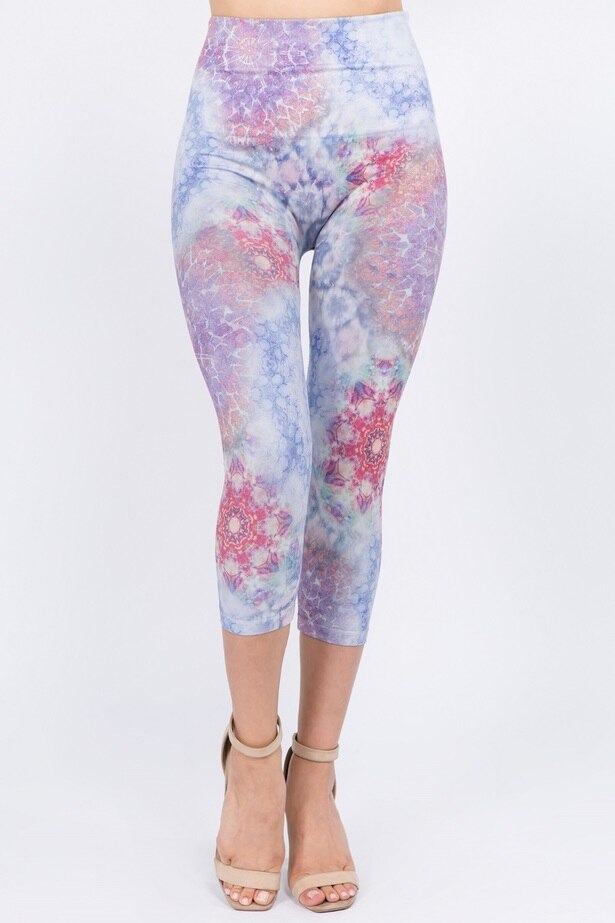 The M. Rena cropped high waist leggings feature their iconic tummy control waistband and an Kaleidoscope Print, and are made in USA!