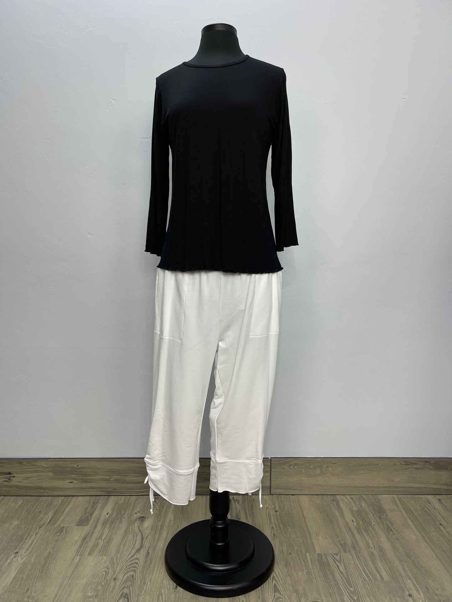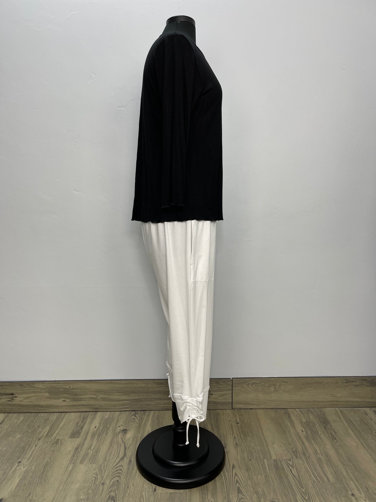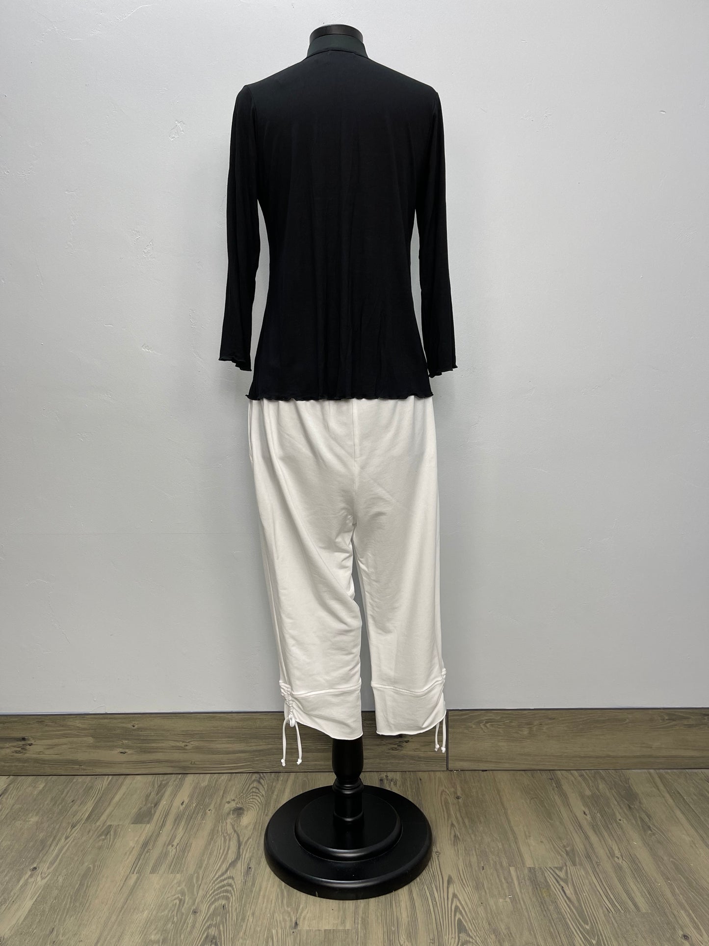 Black 3/4 Sleeve Top with Lettuce Edging