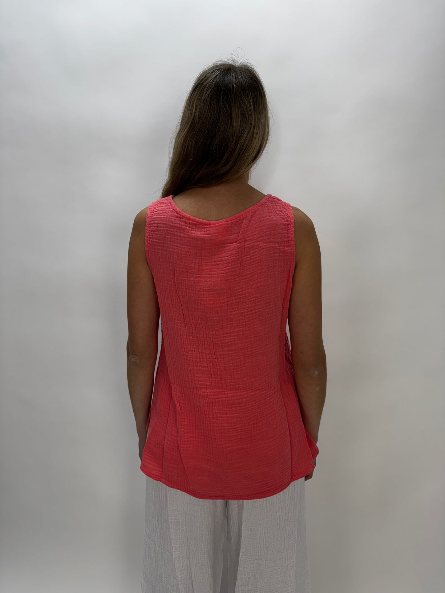 Coral Cotton Gauze Sleeveless Keyhole Tank