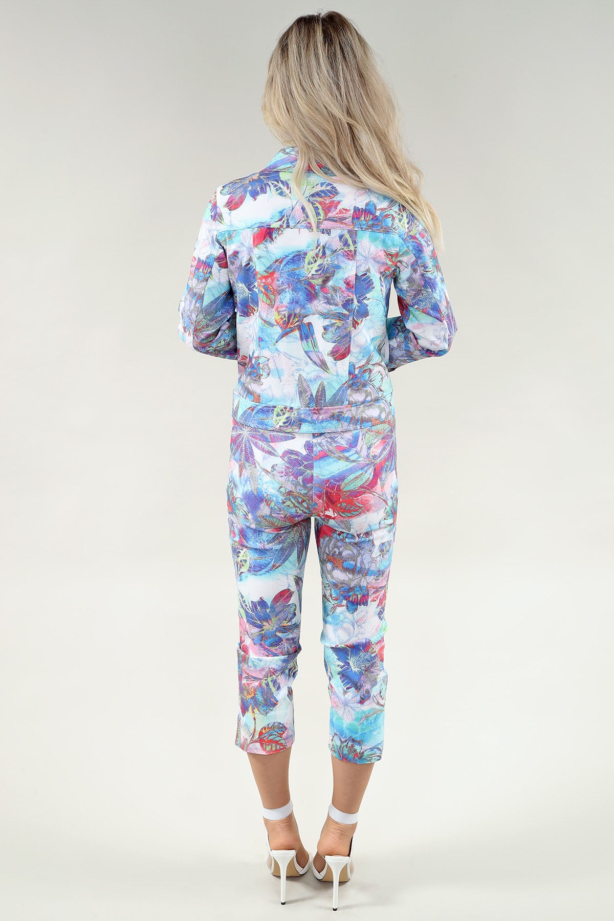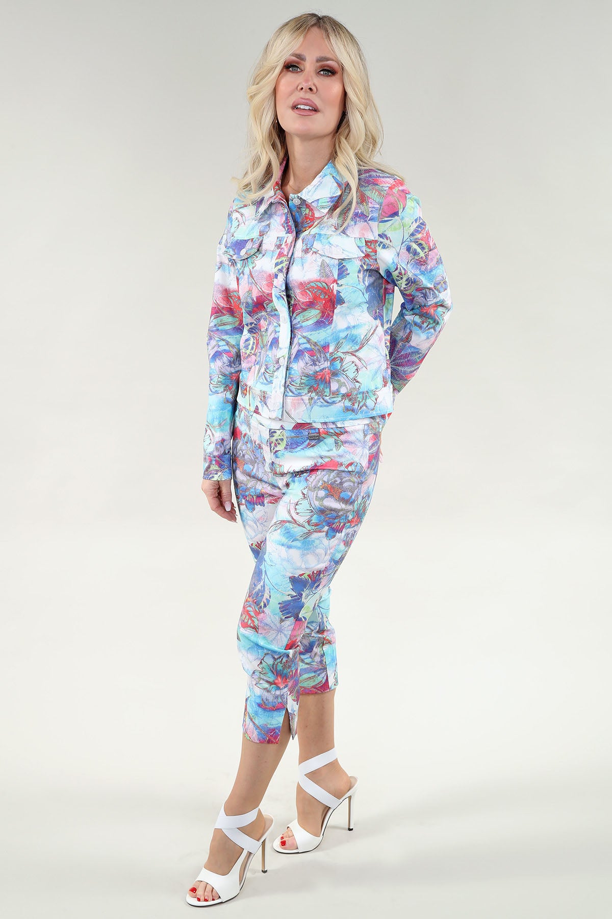 Colorful Watercolor Flowers Jacket with Buttons