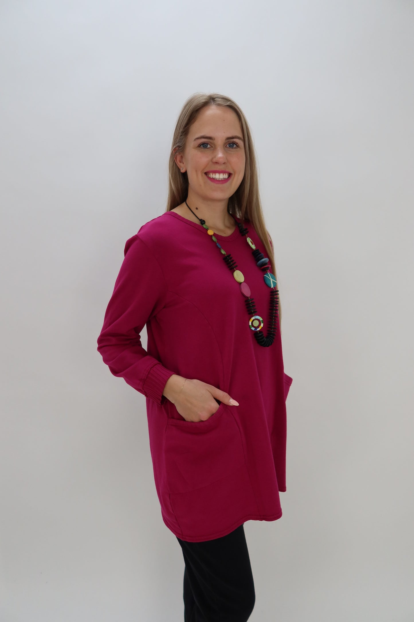 Fuchsia Pink 2 Pocket Long Tunic Top