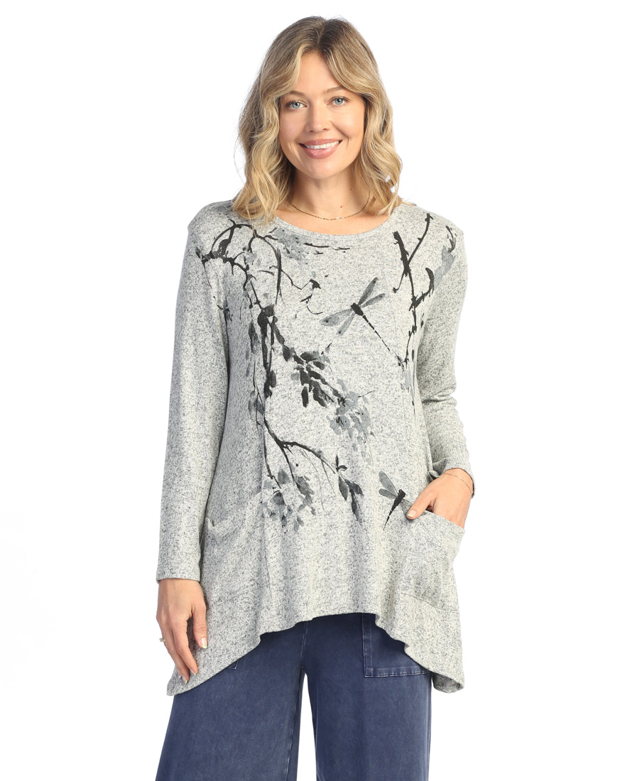 Heather Gray Soft Brushed Knit Tunic with Pockets