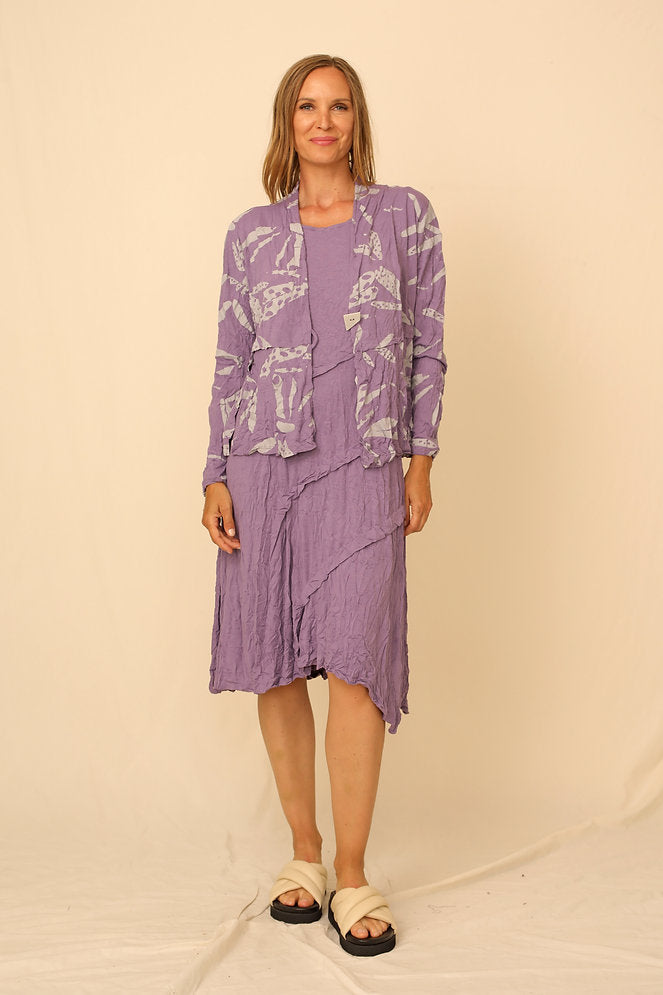 Lavender Purple Pattern Crinkle Jersey Bamboo Cardigan