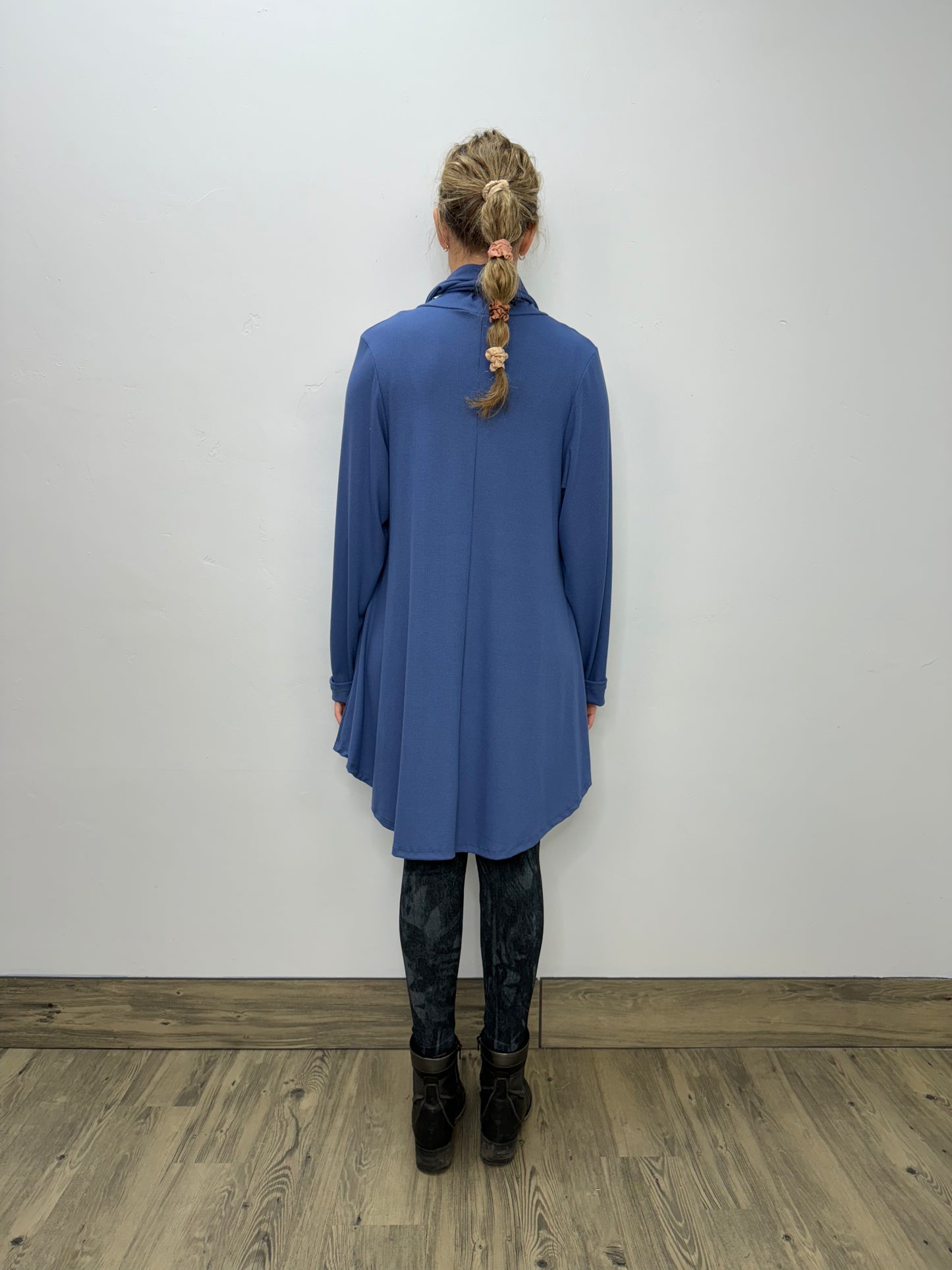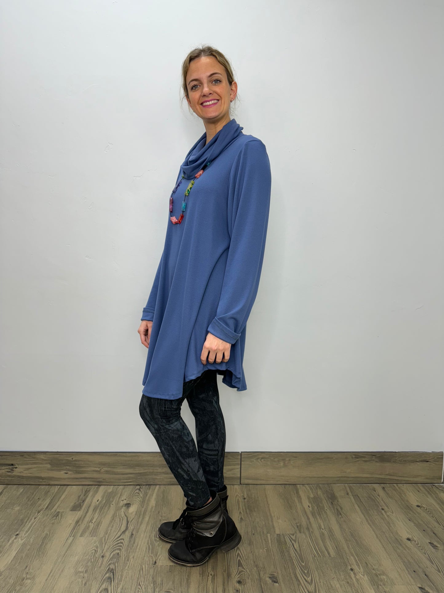 Long Sleeve Ribbed Cowl Neck - Blue Bell
