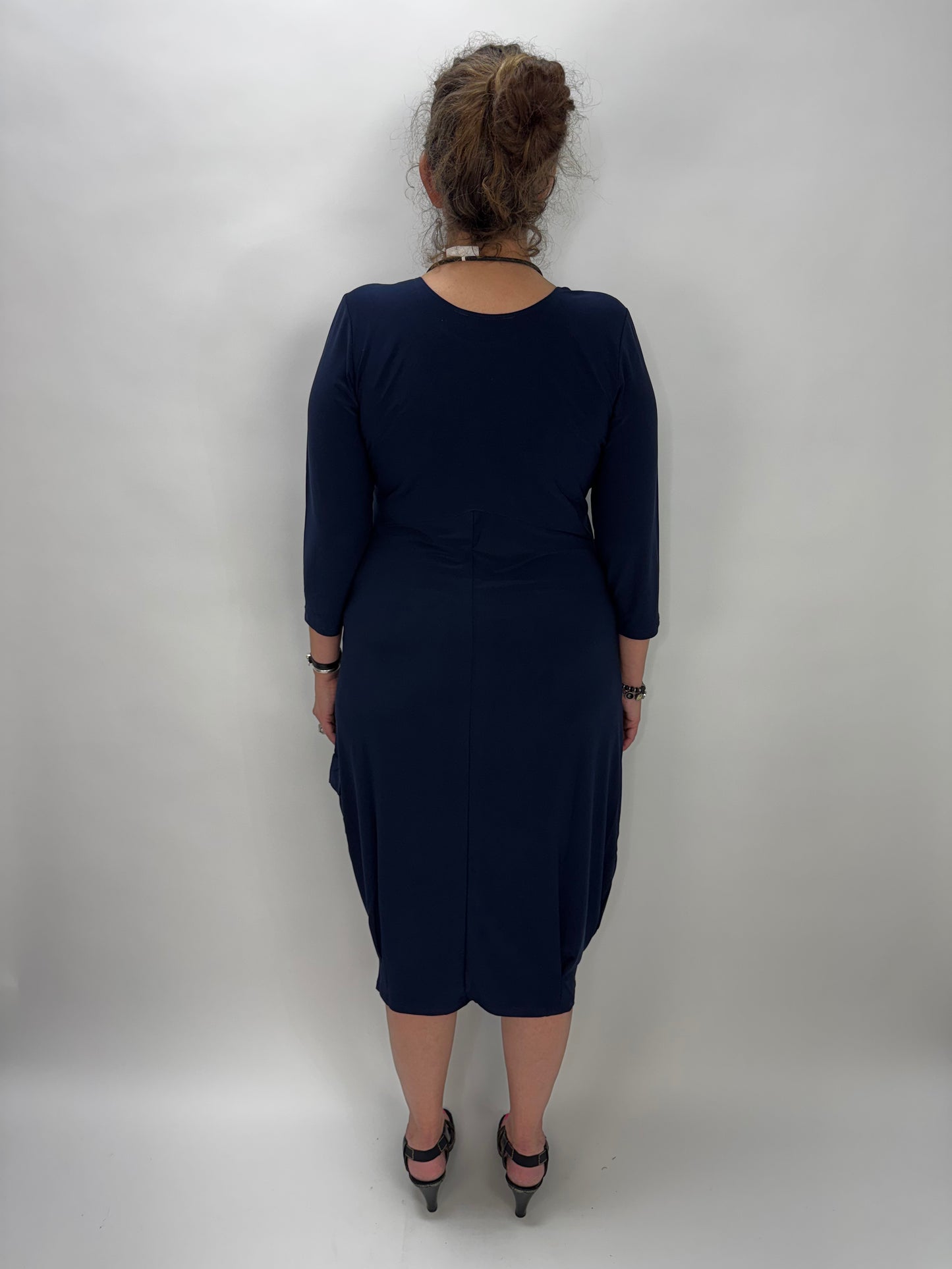 Navy 3/4 Sleeve ITY Midi Dress with Pockets