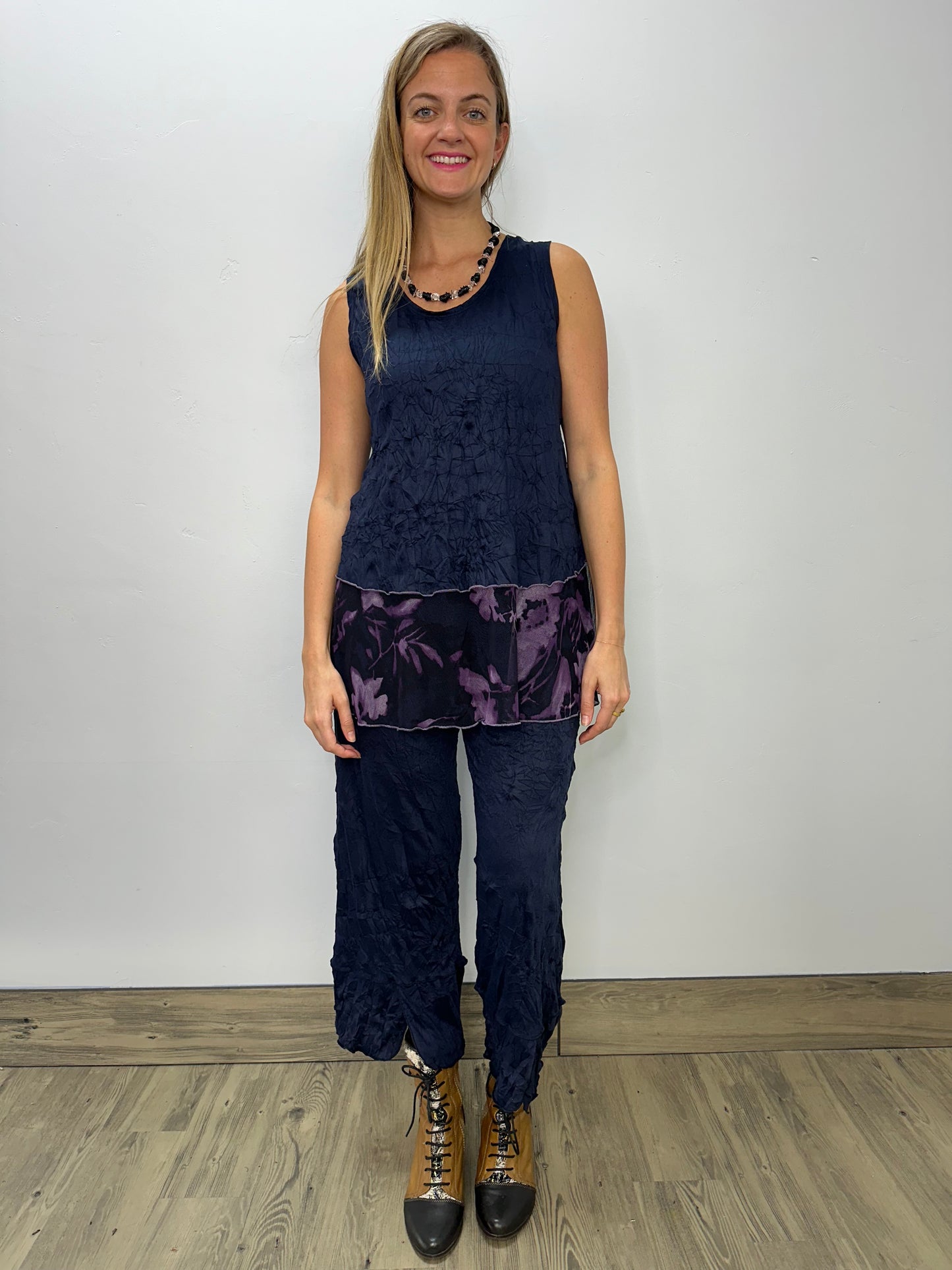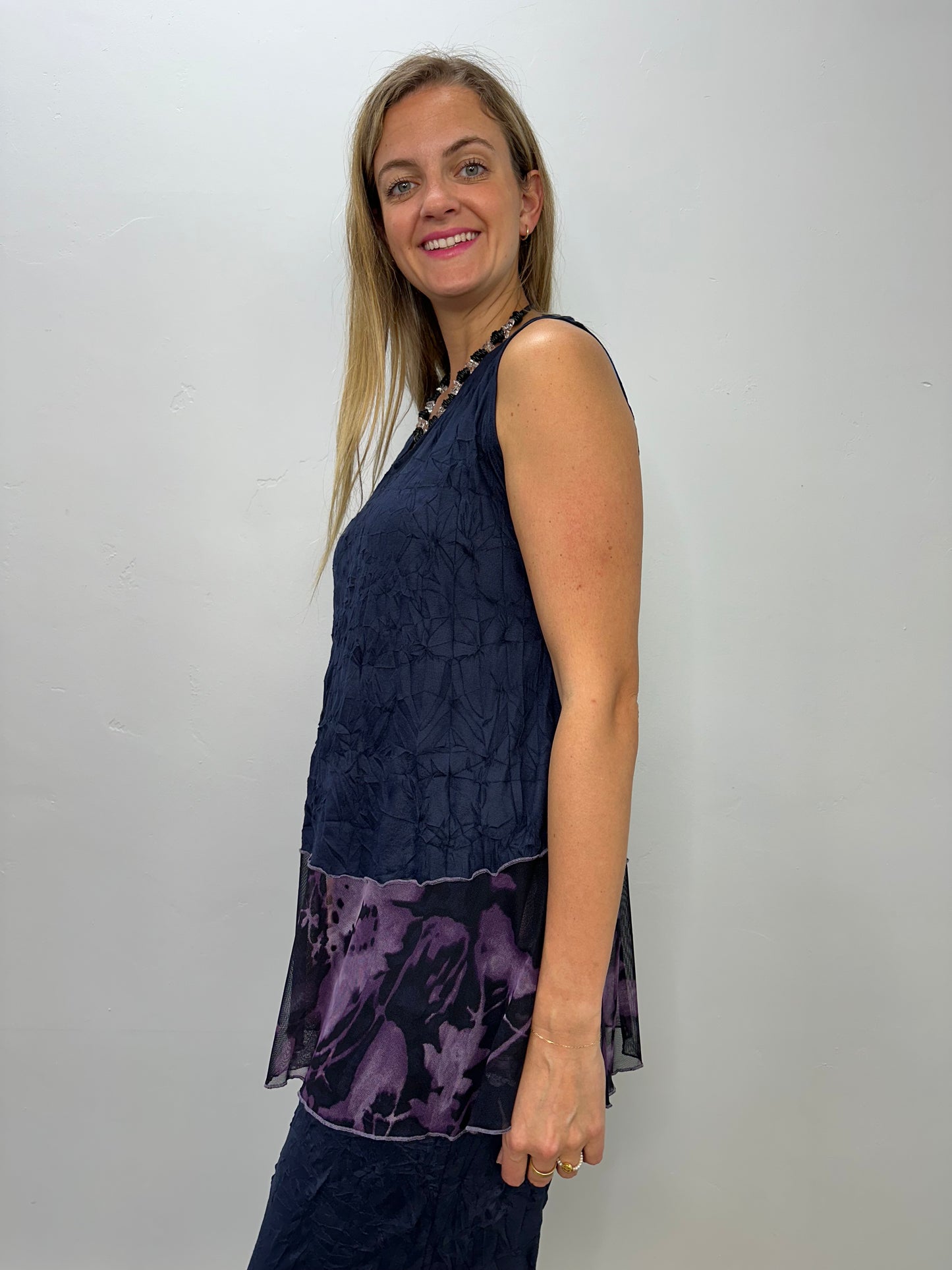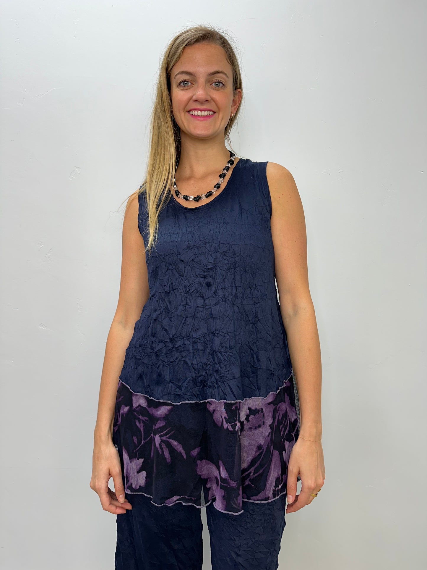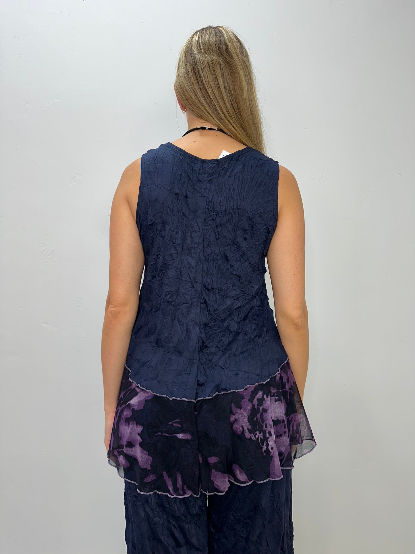 Regular price $55.30Wrap yourself in comfort with our Vine Street Navy Crinkle Lilac Mesh Tank. Made with super soft fabric, this tank is perfect for layering and features a stylish mesh panel on the bottom. Elevate your wardrobe and add a touch of elegance with this must-have piece.