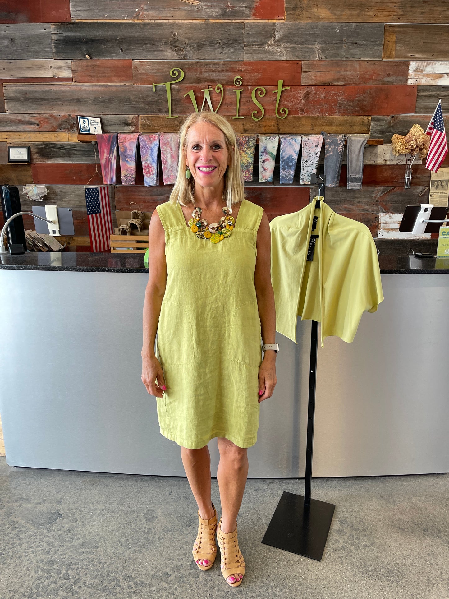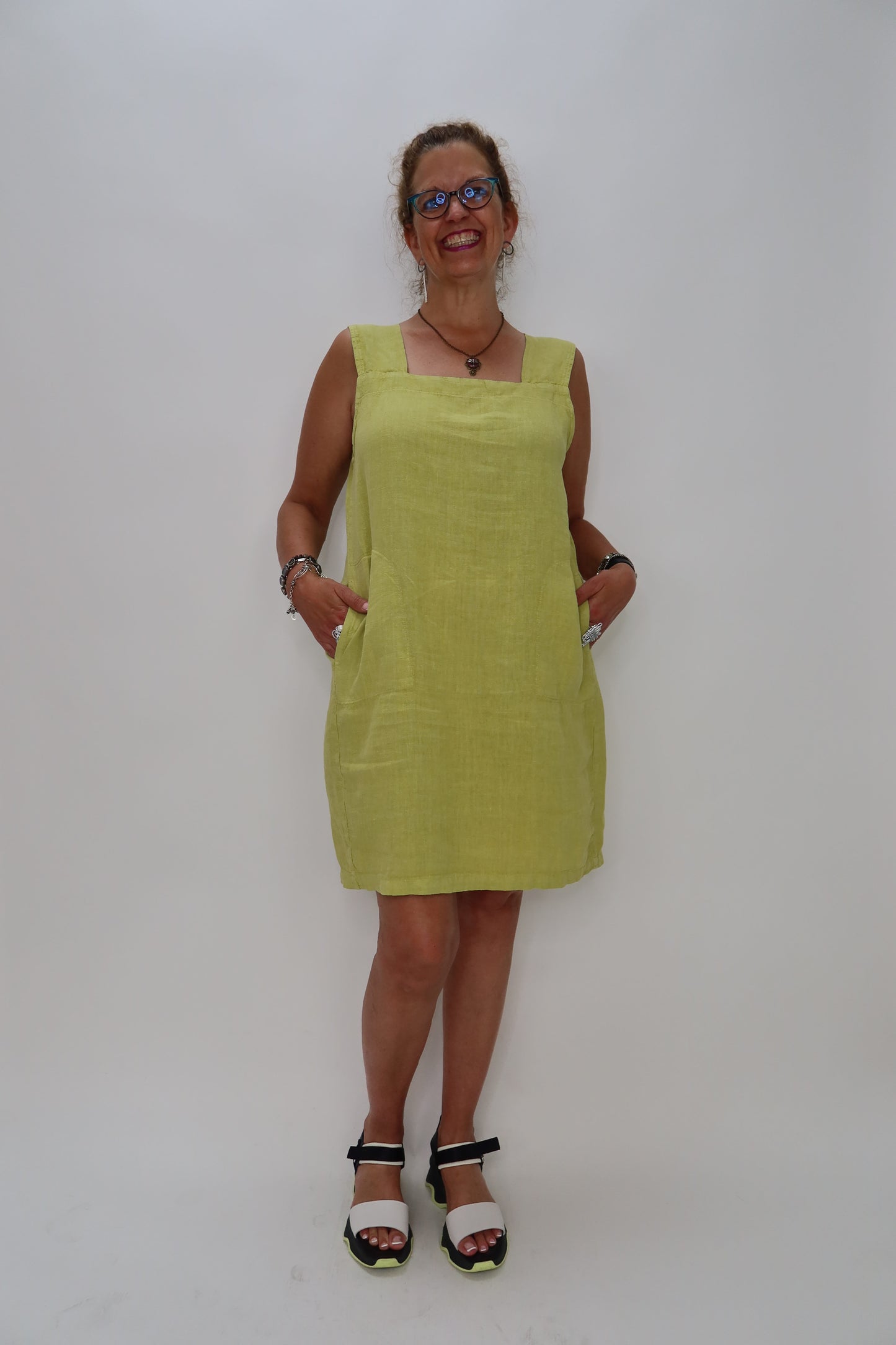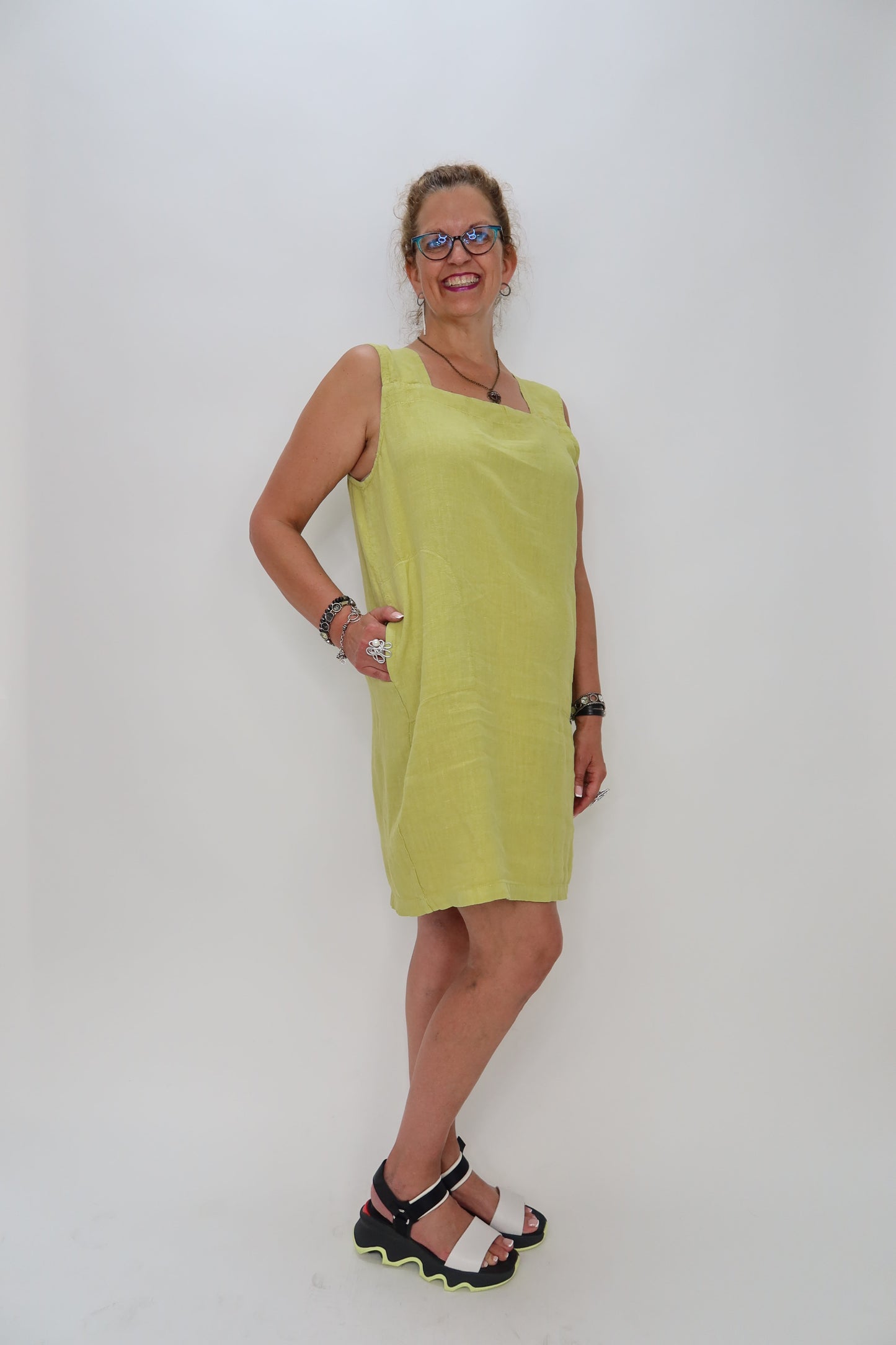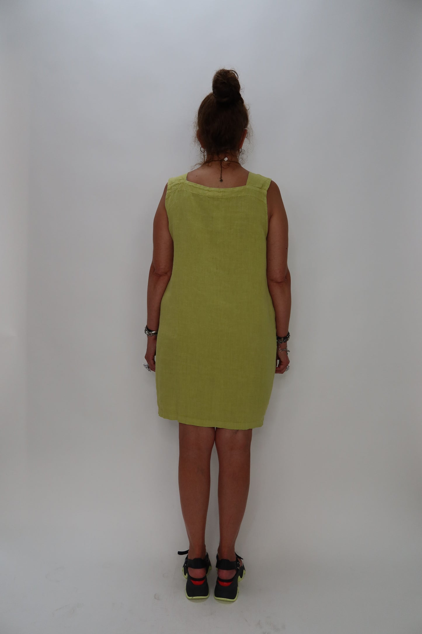 Pistachio Green 100% Linen Sleeveless 2 Pocket Dress