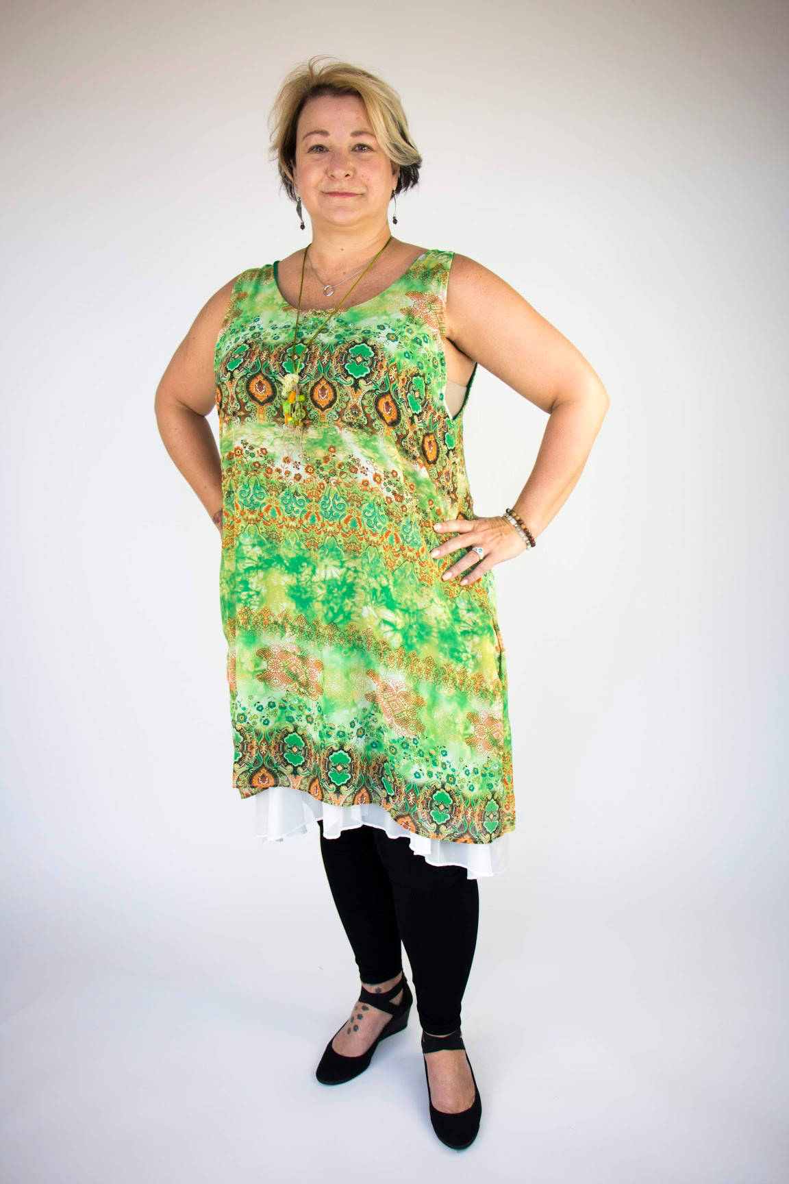 Regular price $39.50Indulge in luxury with our chiffon LA tunic dress, designed by our passionate owner Trish and crafted in sunny Los Angeles. This dress is perfect for warm weather, featuring a comfortable and breathable double layered design, and a sleeveless cut to keep you feeling cool. Elevate your style with the beautiful patterns on this dress!