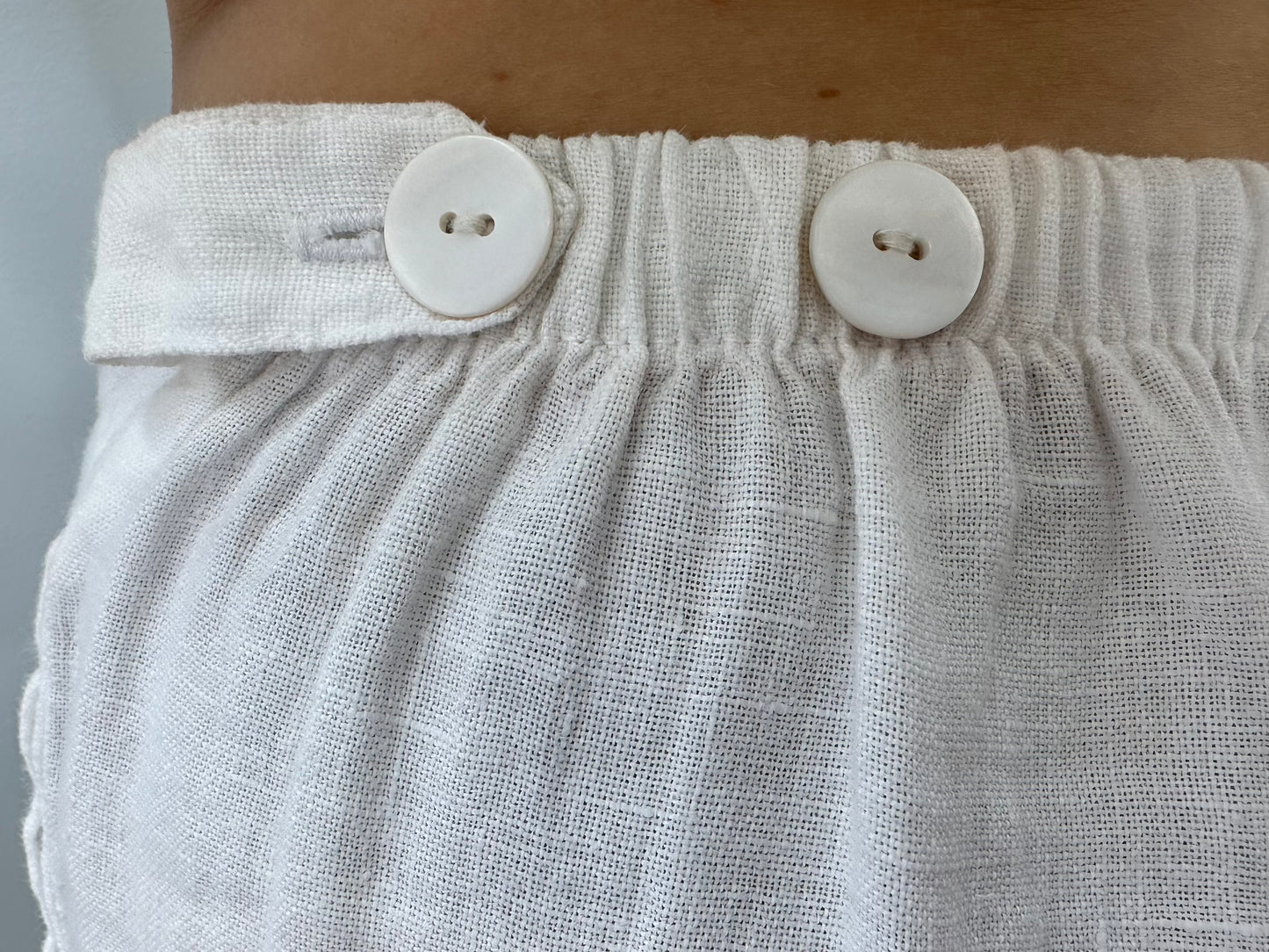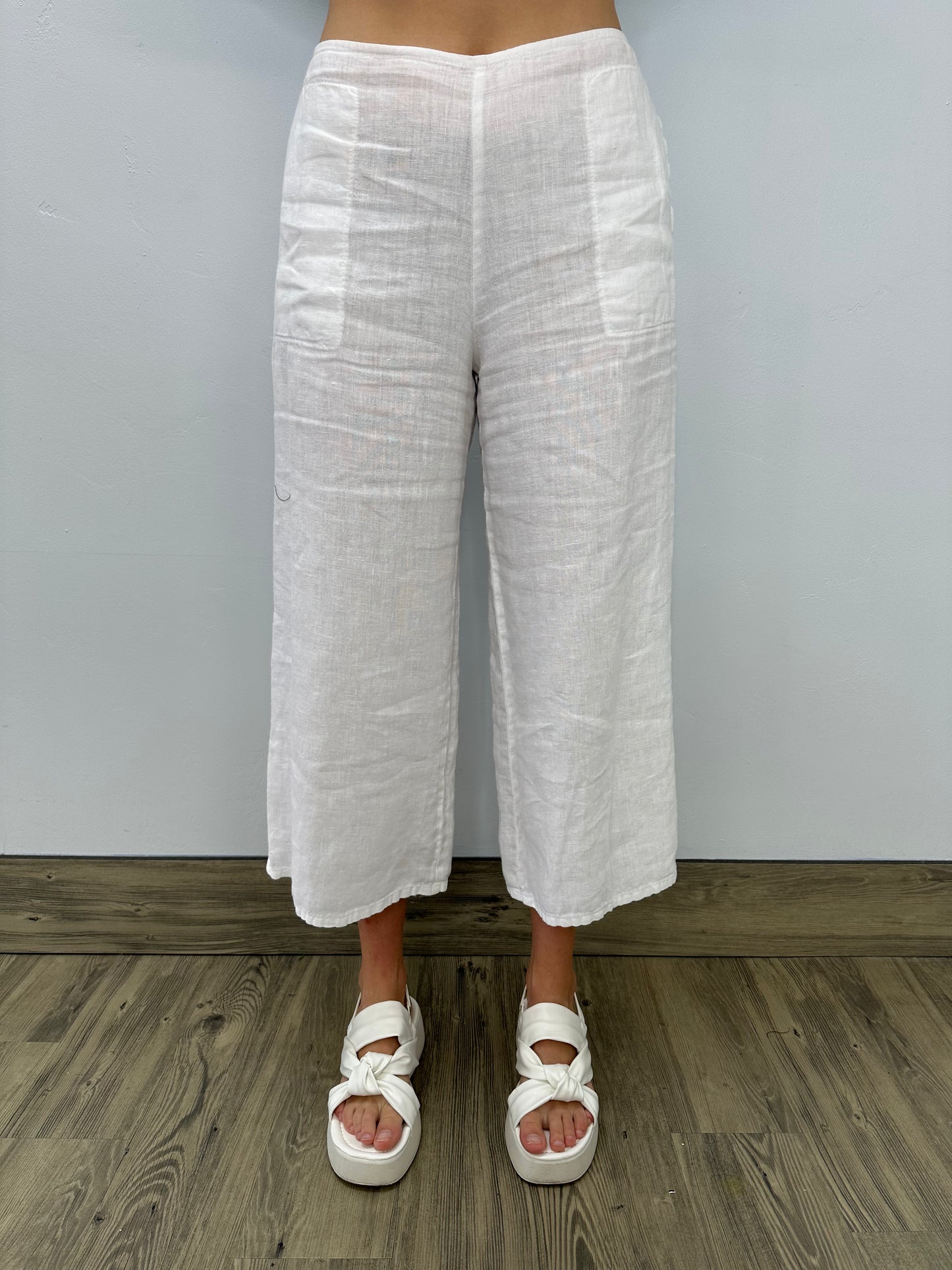 White Linen Flat Front Crop Pant with Adjustable Waist