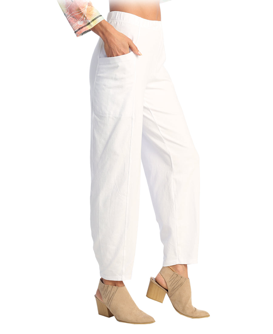 Experience comfort and style like never before with our White Mineral Washed Cotton Lantern Pants. Crafted with quality mineral washed cotton and elastic waist, these pants are perfect for any occasion. You'll love their full, flowing length and the ease of their side seam flat pockets. Get ready to turn heads wherever you go!