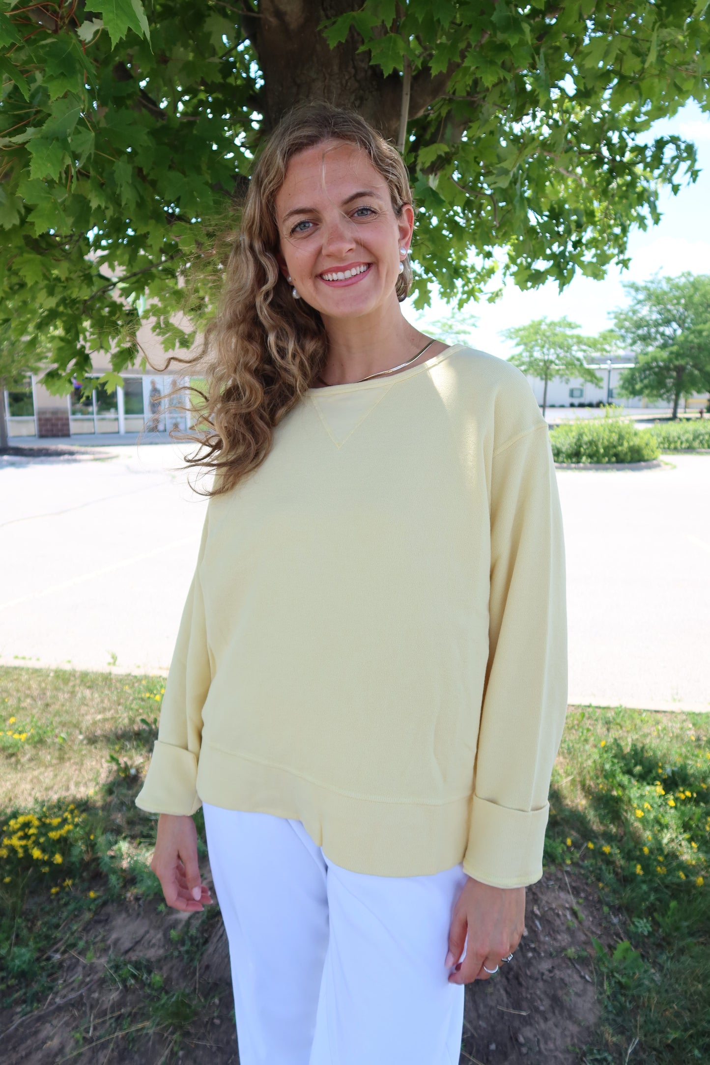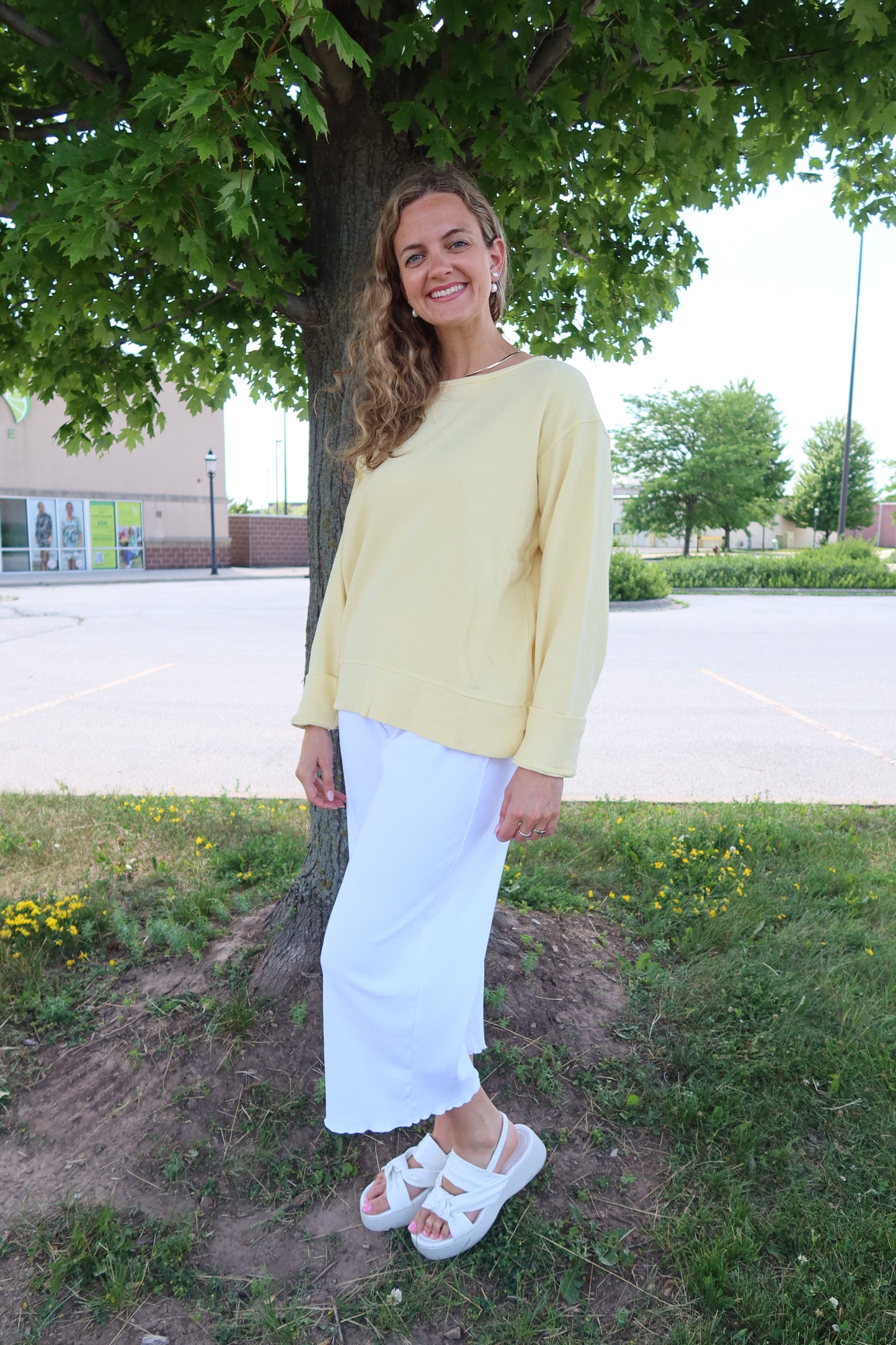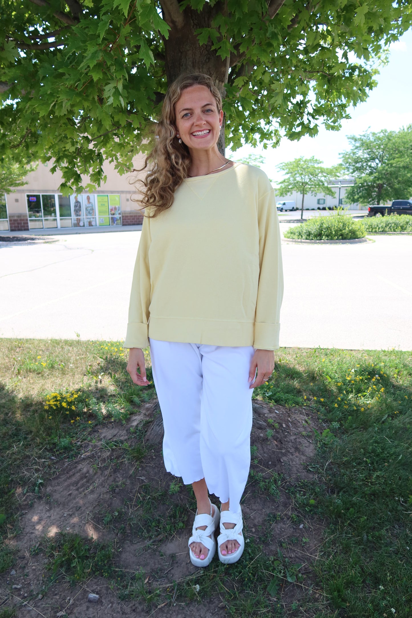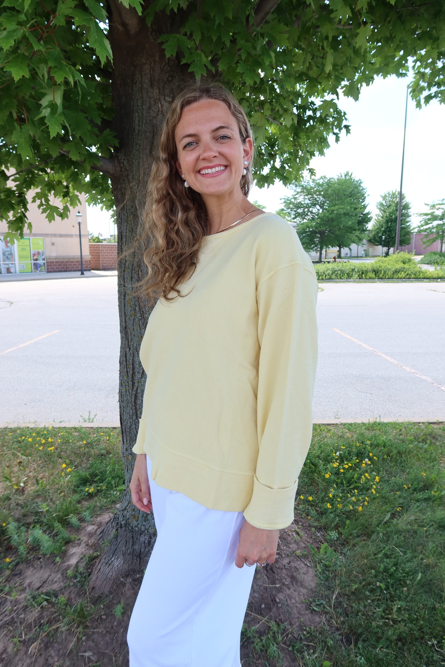 Stay comfortably stylish in our Prairie Cotton Yellow Cozy Crew Neck Sweater, crafted from 100% soft cotton. Its long sleeves and bright butter yellow hue make it an ideal choice for breezy summer days, offering warmth without overheating. Perfect for layering or wearing on its own, this sweater combines cozy comfort with a vibrant pop of color to brighten your wardrobe!
