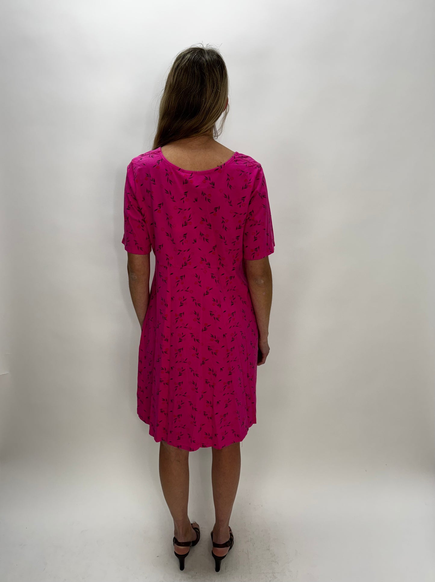 Fuchsia Pink Flower Pattern Empire Waist Cotton Dress